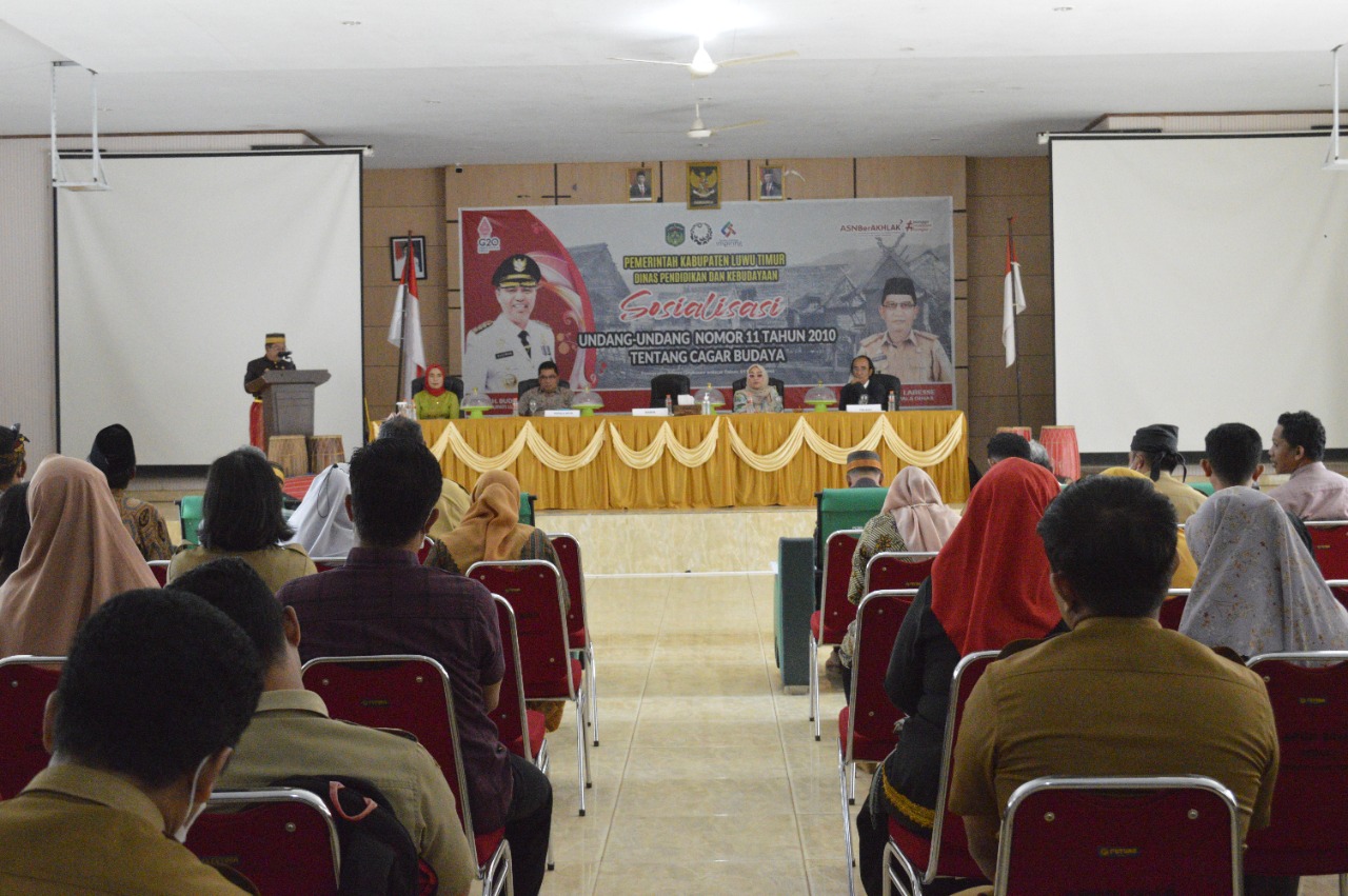 LUWU TIMUR – Dinas Pendidikan dan Kebudayaan (Disdikbud) Kebupaten Luwu Timur melalui Bidang Kebudayaan menggelar sosialisasi Undang-Undang (UU) Nomor 10 Tahun 2010 tentang Cagar Budaya, di Aula Disdikbud, Senin (12/09/2022).