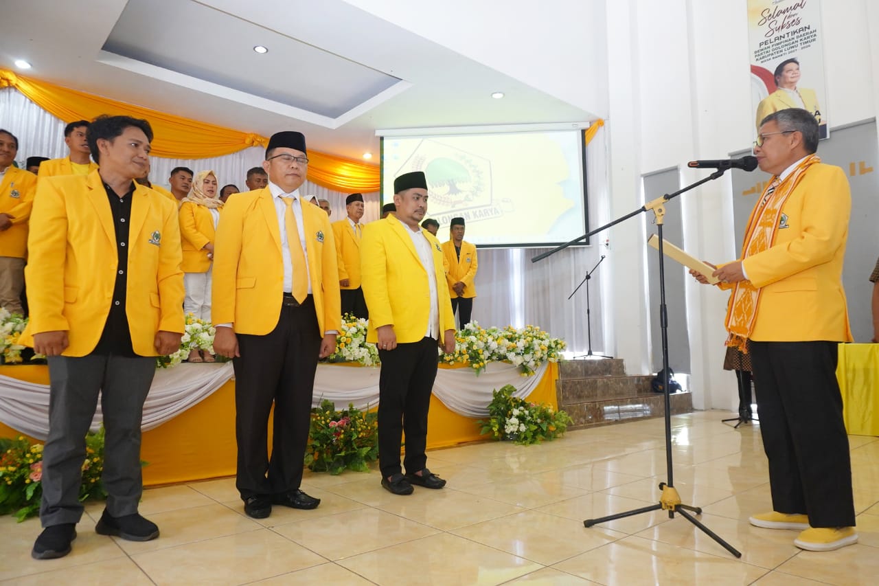 Pelantikan Ketua DPD II Partai Golkar Kabupaten Luwu Timur ini ditandai dengan penyerahan Bendera Pataka yang dilakukan oleh Ketua DPD I Partai Golkar Provinsi Sulawesi Selatan, Taufan Pawe kepada Aripin, S.Ag.
