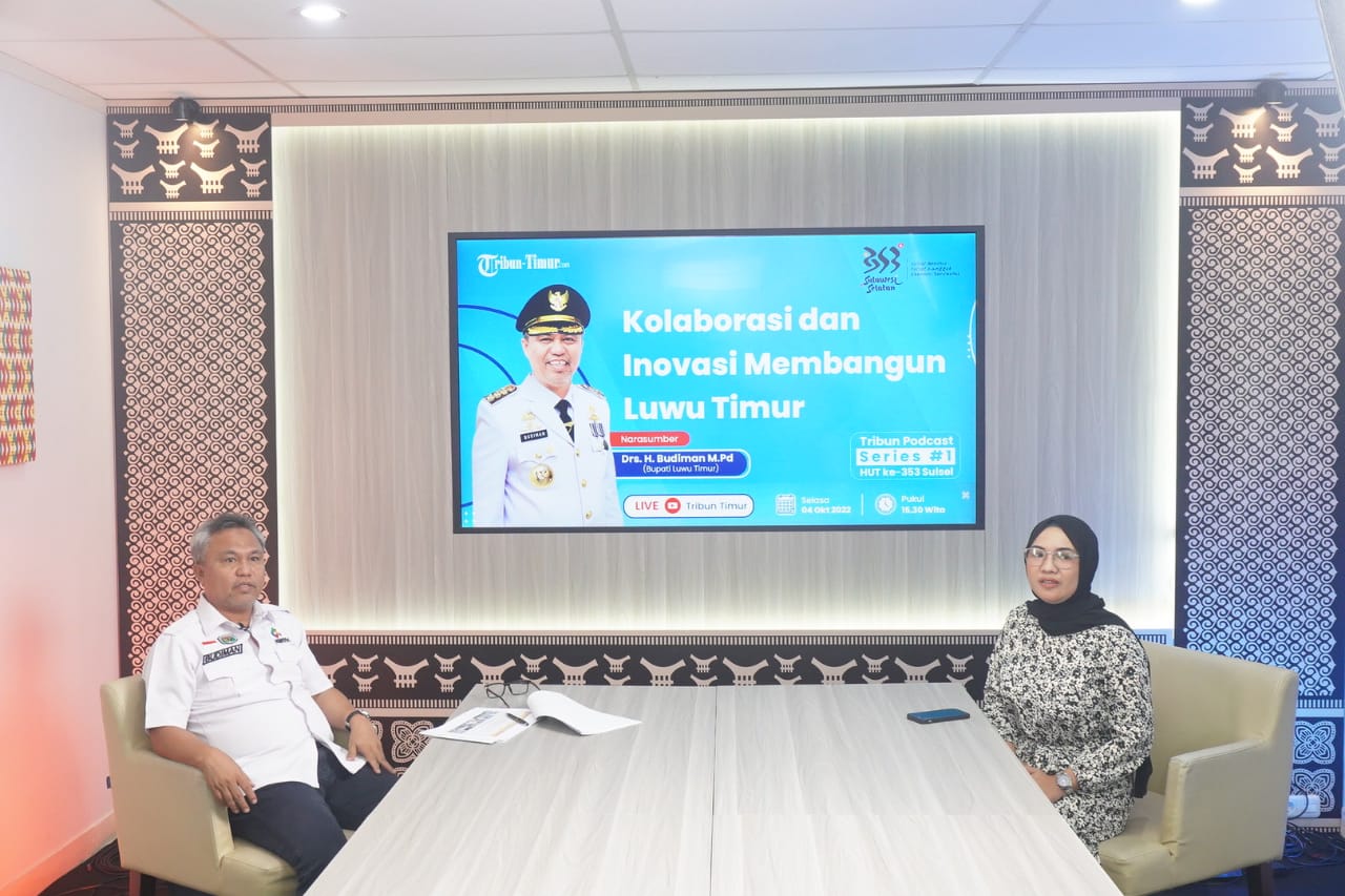 LUWU TIMUR – Bupati Luwu Timur, H. Budiman menjadi narasumber pada program Podcast “Sulsel Series” dalam rangka menyambut HUT ke-353 Provinsi Sulawesi Selatan yang disiarkan secara langsung melalui kanal Youtube Tribun Timur pada hari Selasa, (04/10/2022), dan lokasi syutingnya bertempat di gedung Tribun Timur Makassar.