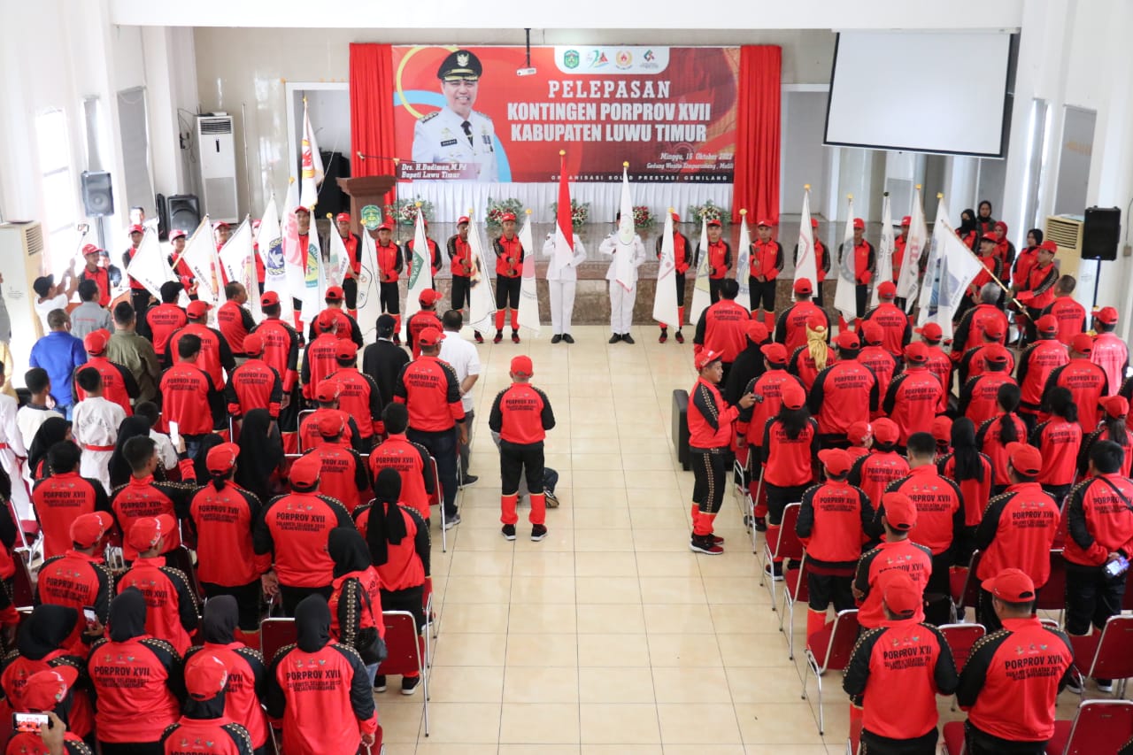 LUWU TIMUR – 220 atlet Kabupaten Luwu Timur yang akan mengikuti Pekan Olahraga Provinsi (Porprov) XVII Sulawesi Selatan Tahun 2022 di Kabupaten Sinjai dan Bulukumba resmi dilepas oleh Bupati Luwu Timur, H. Budiman.