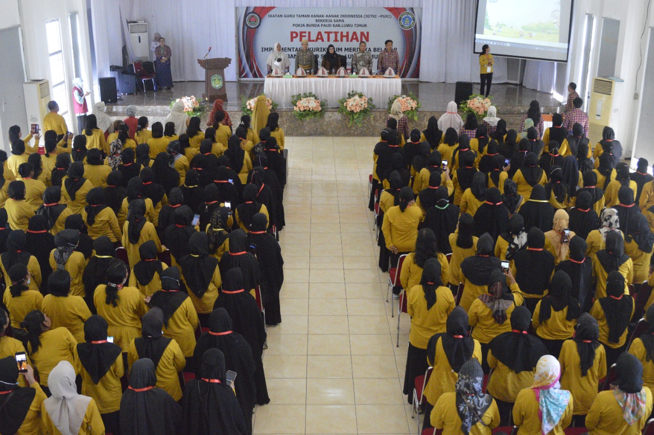 LUWU TIMUR – Bunda PAUD Kabupaten Luwu Timur, Hj. Sufriyati Budiman membuka pelatihan implementasi kurikulum merdeka belajar jenjang PAUD se Kabupaten Lutim dengan tema “Bergerak dan Berdampak”, di Gedung Wanita Simpurusiang, Malili, Rabu (19/10/2022).