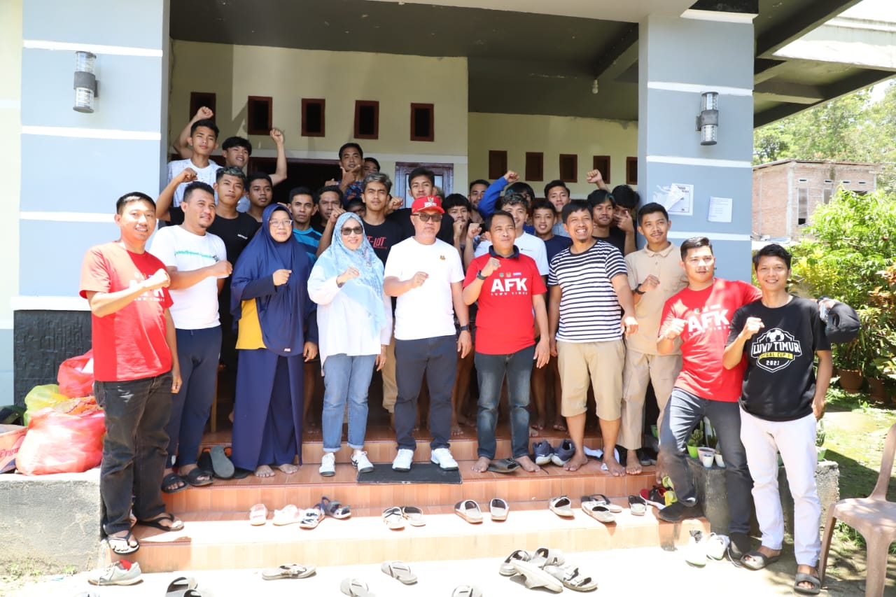 LUWU TIMUR – Bupati Luwu Timur, H. Budiman didampingi Ketua TP PKK, Hj. Sufriaty mengunjungi pemondokan Kontingen Futsal Porprov Kabupaten Luwu Timur di Jl. Andi Paddo Kelurahan Biringere, Kecamatan Sinjai Utara, Sinjai, Sabtu (22/10/2022).