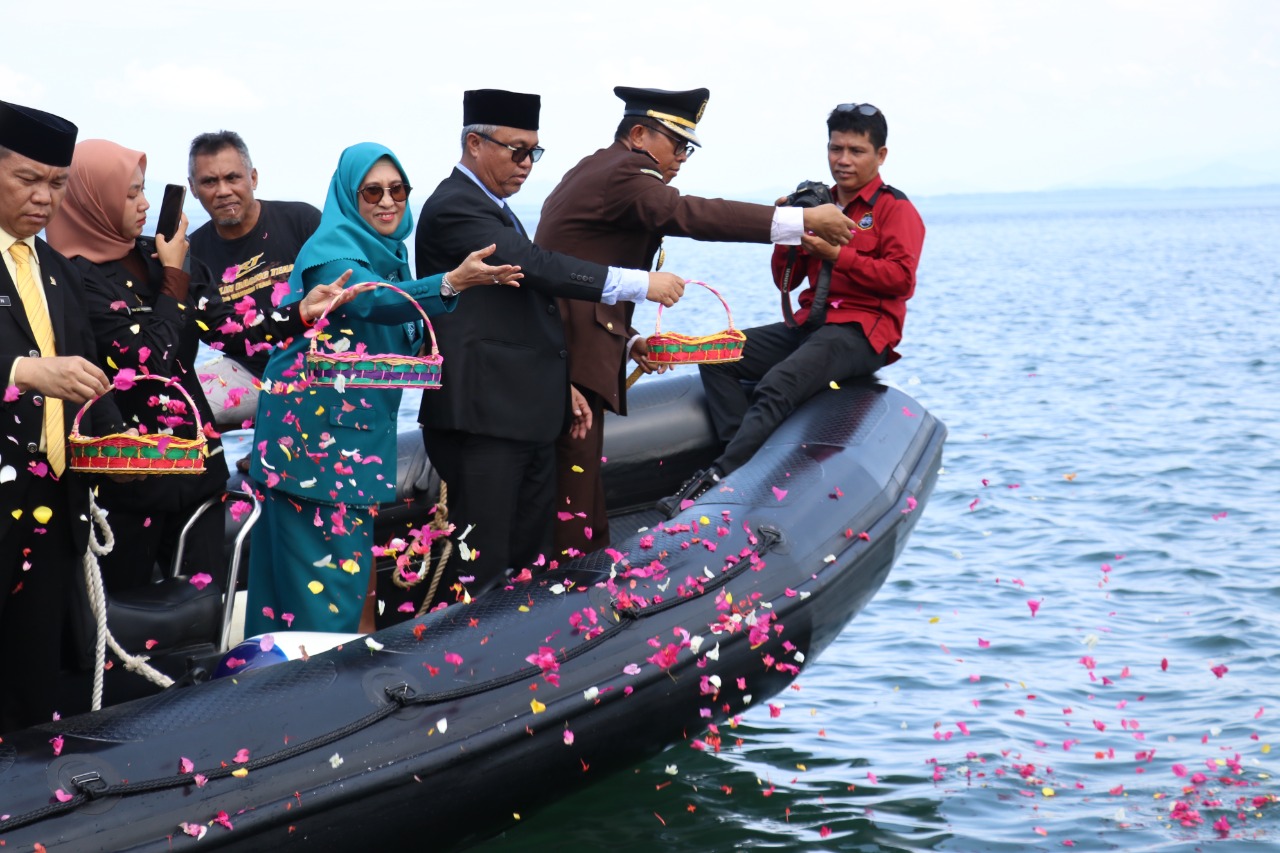 Upacara Tabur Bunga di laut merupakan wujud pemberian penghargaan dan penghormatan atas jasa dan pengorbanan para pahlawan yang telah gugur pada pertempuran laut dalam upaya merebut dan mempertahankan kemerdekaan negara dan bangsa Republik Indonesia. (op/prokopim/ikp-humas/kominfo-sp)