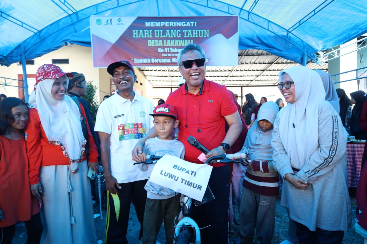 LUWU TIMUR – Bupati Luwu Timur, H. Budiman bersama Ketua TP PKK Kabupaten Luwu Timur, Hj. Sufriaty menghadiri perayaan Hari Ulang Tahun (HUT) ke-41 Desa Lakawali, Kecamatan Malili, yang berlangsung di halaman Kantor Desa Lakawali, Sabtu (12/11/2022).