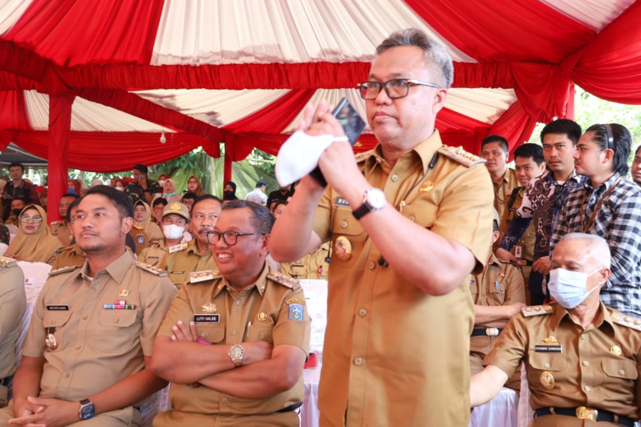 LUWU TIMUR – Bupati Luwu Timur, H. Budiman bersama Kepala Daerah se-Sulawesi Selatan mengikuti kegiatan Panen Raya Padi, Bakti Sosial dan Pencegahan Stunting yang diadakan oleh KODAM XIV Hasanuddin di Desa Je’ne Taesa, Kecamatan Simbang, Kab. Maros, Selasa (15/11/2022).