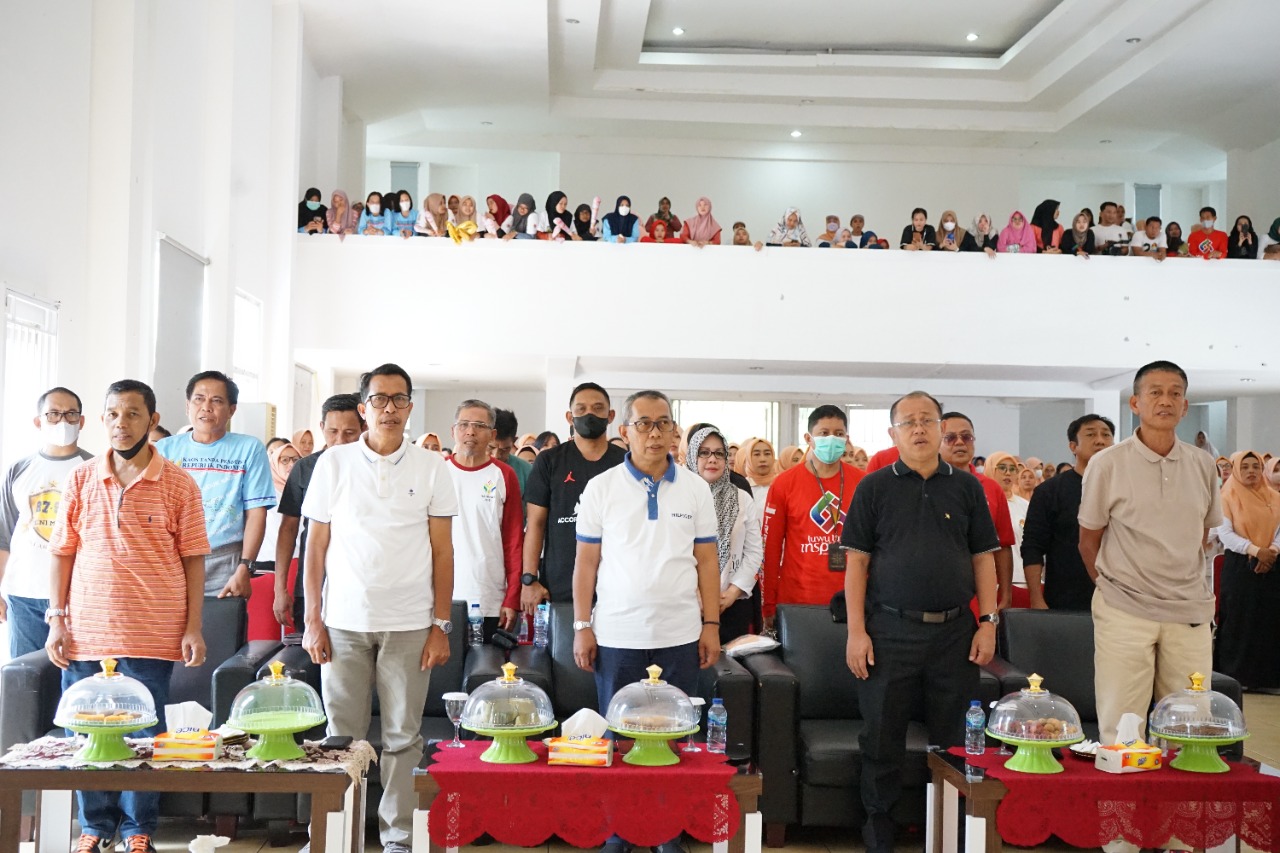 LUWU TIMUR – Sekretaris Daerah Kabupaten Luwu Timur, H. Bahri Suli mewakili Bupati Lutim, didampingi Ketua Dharma Wanita Persatuan (DWP), Hj. Masrah Bahri Suli, membuka secara resmi lomba senam DWP, DWP gembira dan menyanyi duet antara penasehat DWP, kepala OPD, asisten, staf ahli, camat dan para kepala bagian Lingkup Pemerintah Kabupaten (Pemkab Lutim) bertempat di Gedung Wanita Simpurusiang, Rabu (16/11/2022).