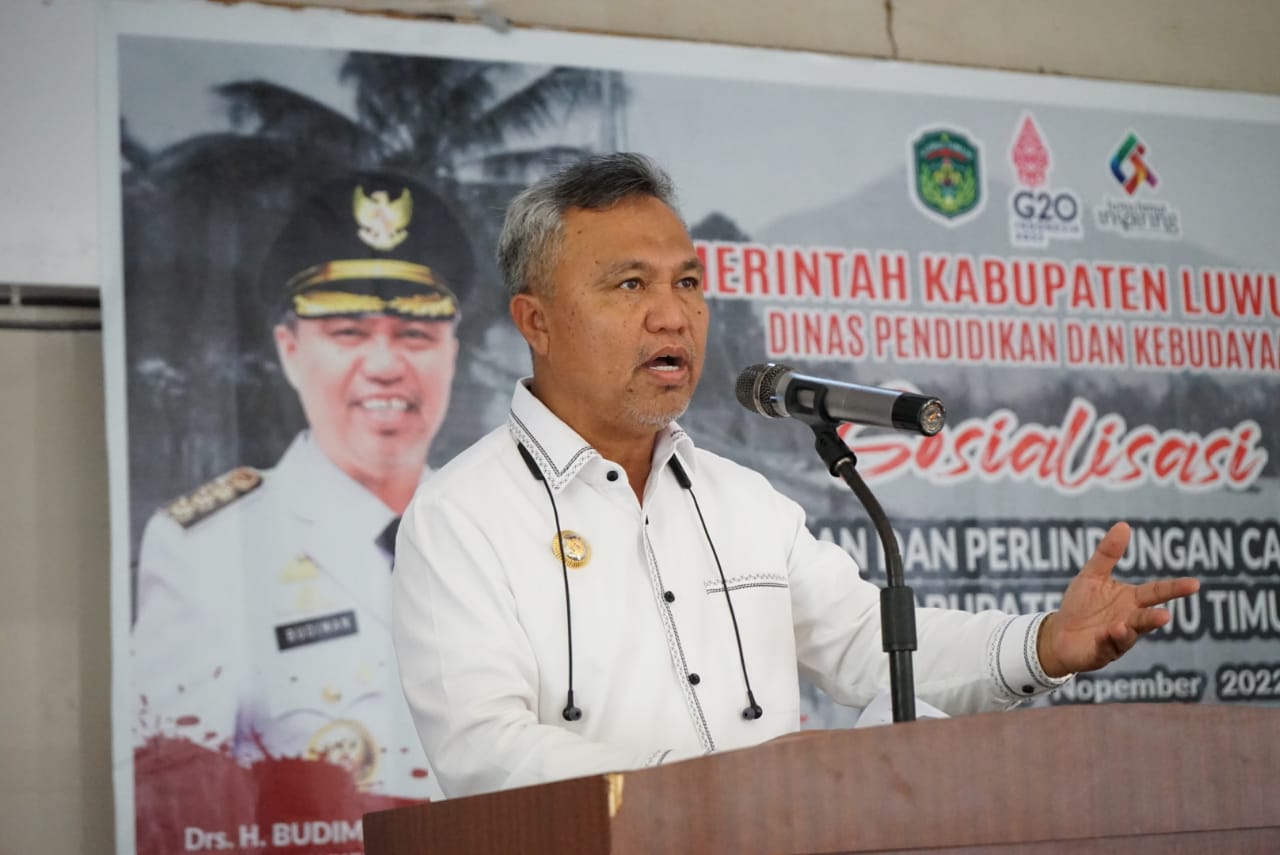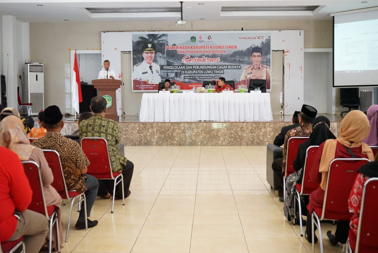 LUWU TIMUR – Bupati Luwu Timur, H. Budiman memberikan apresiasi Kepada Bidang Kebudayaan Dinas Pendidikan dan Kebudayaan Lutim yang tidak henti-hentinya melakukan kegiatan terkait Cagar Budaya.