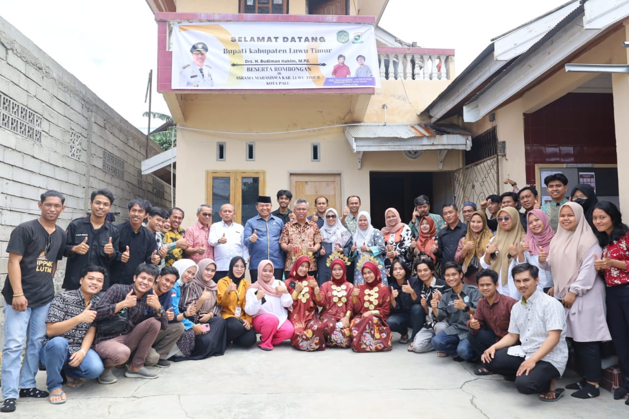 LUWU TIMUR – Bupati Luwu Timur, H. Budiman di dampingi Ketua DPRD Luwu Timur, Aripin, Ketua TP PKK Luwu Timur, Hj. Sufriyati Budiman, Sekertaris Daerah, H. Bahri Suli, Wakil Ketua I, HM. Siddiq BM, Kadis PU PR, Syahmuddin, meluangkan waktu menyambangi asrama mahasiswa Luwu Timur, di Jalan Hang Tuah, Palu, Jumat (25/11/2022).