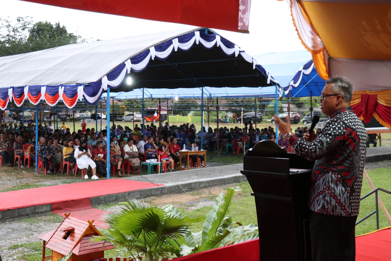 LUWU TIMUR – Bupati Luwu Timur, H. Budiman menghadiri Perayaan Natal Bersama ASN, TNI, POLRI, Umat Kristen se Kabupaten Luwu Timur yang digelar di Lapangan Sepakbola Desa Maleku, Kecamatan Mangkutana, Sabtu (03/12/2022).