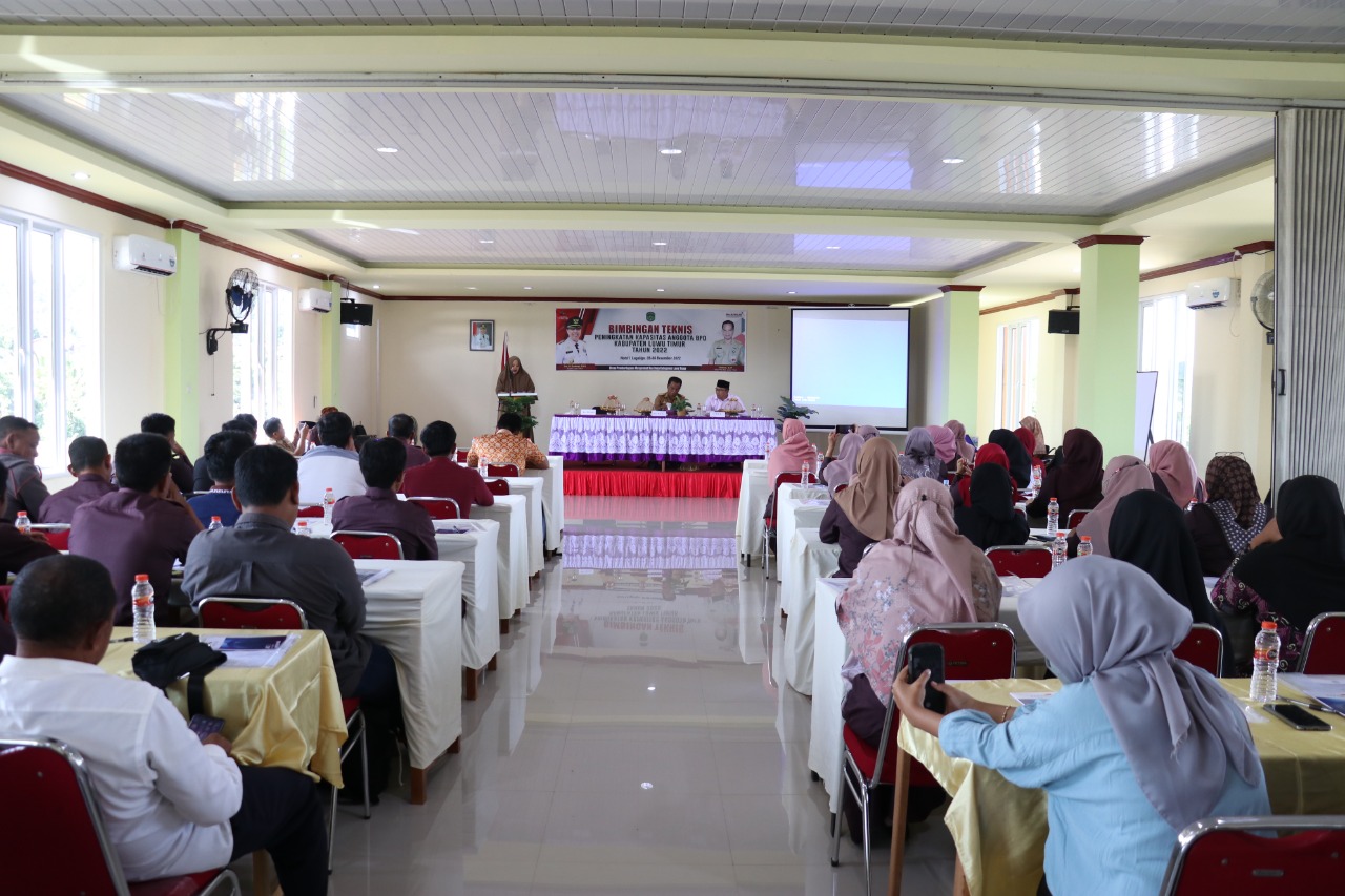 LUWU TIMUR – Asisten Pemerintahan dan Kesejahteraan Rakyat Setdakab Luwu Timur, Aini Endis Anrika mewakili Bupati Lutim membuka Bimbingan Teknis (Bimtek) Peningkatan Kapasitas Anggota Badan Permusyawaratan Desa (BPD) se-Lutim, di Ballroom Hotel I Lagaligo Malili, Senin (05/12/2022).