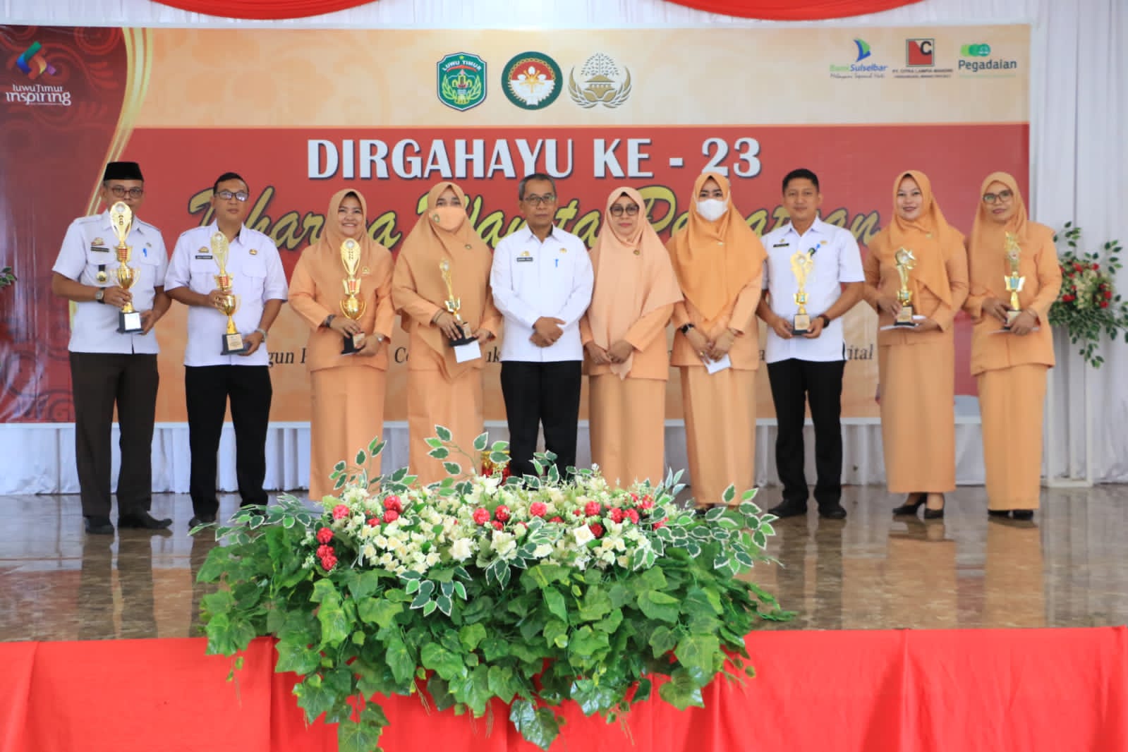 Pada kesempatan itu, juga dilaksanakan penyerahan hadiah kepada pemenang lomba yang digelar dalam rangkaian HUT DWP ke 23 Kabupaten Luwu Timur yakni Lomba Nyanyi Duet antar OPD, Lomba Senam serta Lomba DWP Gembira yang meliputi Estafet Sarung, Estafet Jeruk dan pesan berantai.