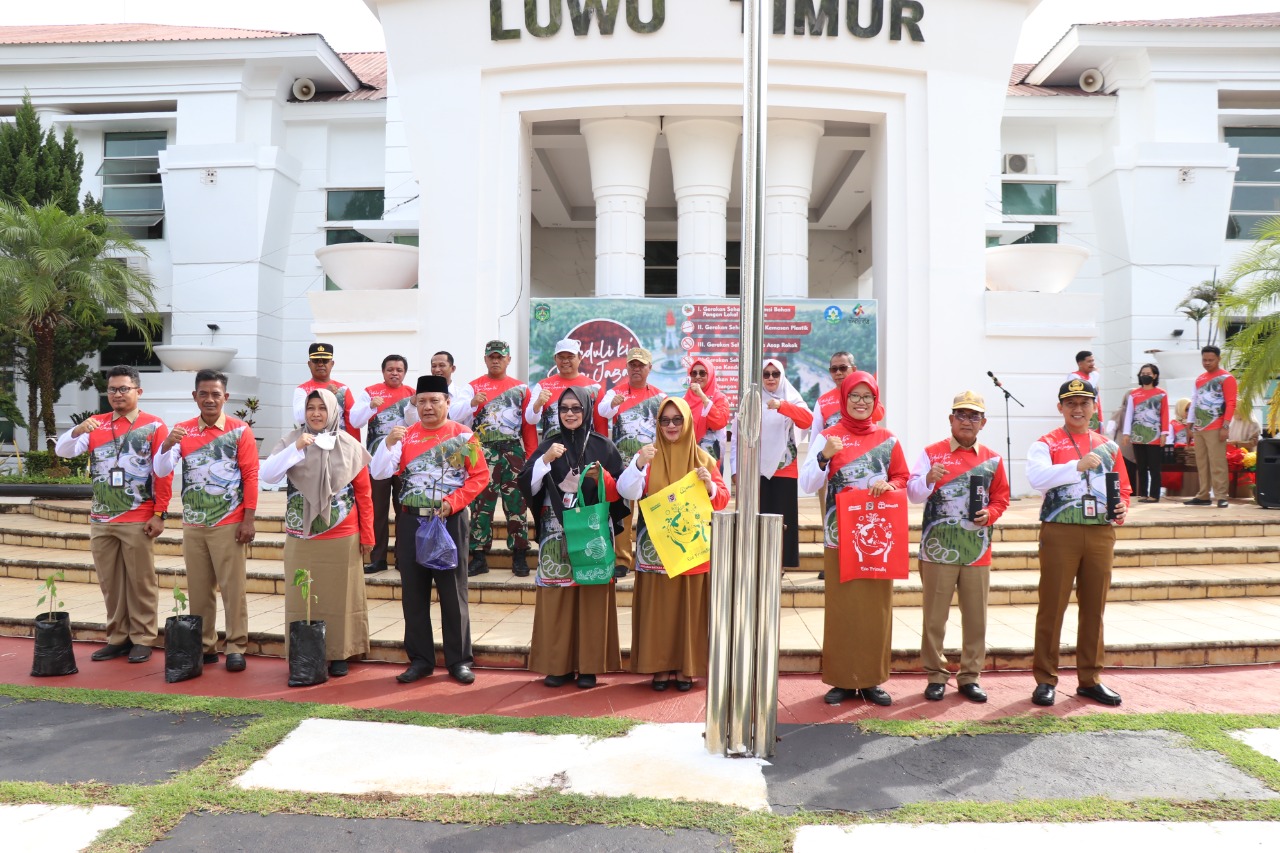 Launching gerakan tersebut ditandai dengan penyerahan Tumbler, bibit durian dan cabe, serta tas belanja ramah lingkungan kepada perwakilan ASN yang dilakukan oleh Bupati Luwu Timur bersama unsur Forkopimda Lutim, Sekda, H. Bahri Suli, Ketua TP PKK Lutim, Hj. Sufriaty dan dari Perbankan, serta perwakilan dari Gerai Minimarket.