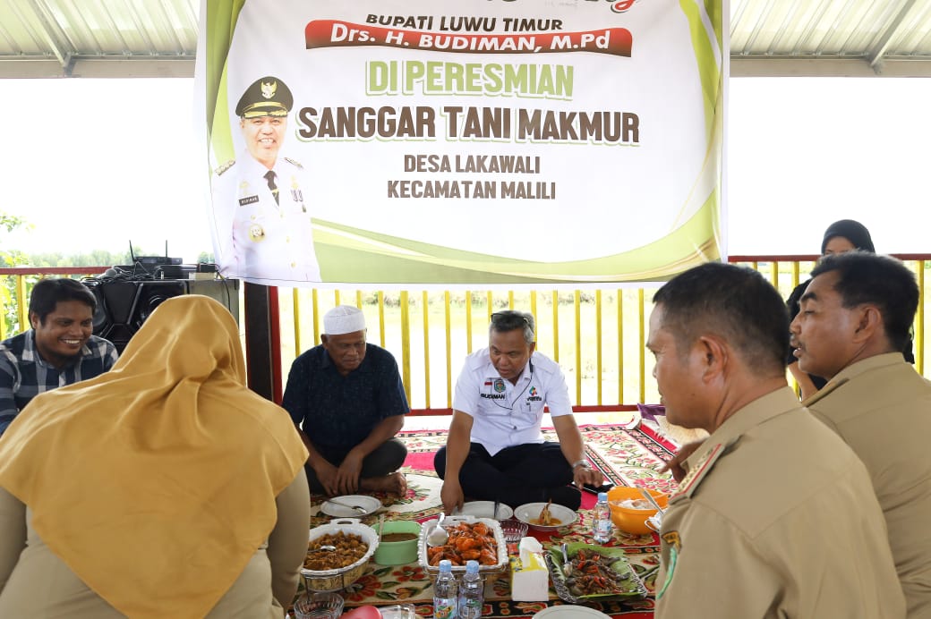 LUWU TIMUR – Bupati Luwu Timur, H. Budiman didampingi Anggota DPRD Luwu Timur, Najamuddin dan Kadis Perikanan, Alimuddin Nasir, meresmikan Sanggar Tani Makmur di Dusun Podomoro, Desa Lakawali, Kecamatan Malili, Selasa (03/01/2023).