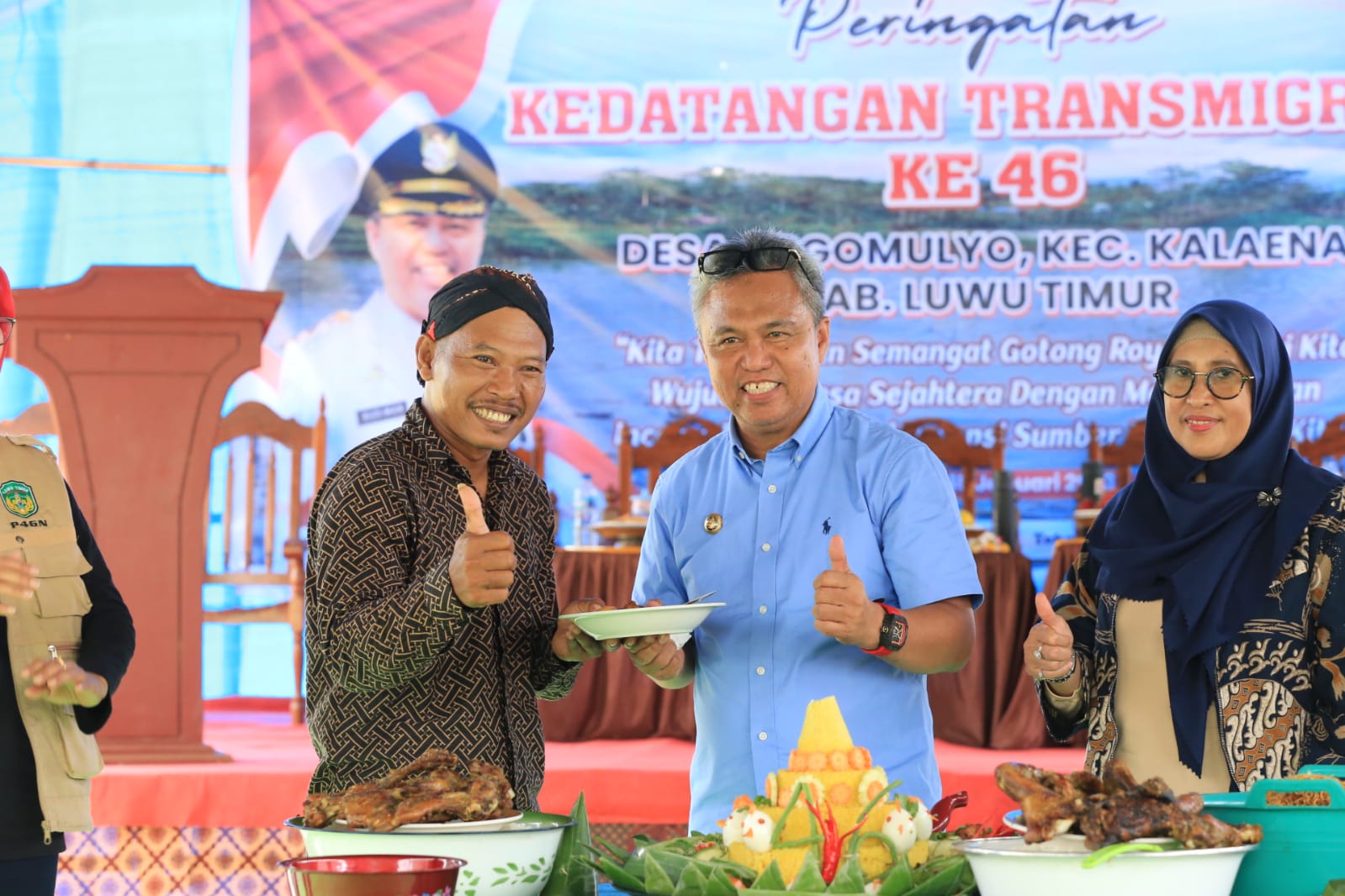 LUWU TIMUR – Warga Desa Argomulyo, Kecamatan Kalaena menggelar syukuran 46 tahun Kedatangan Transmigrasi di Desa Argomulyo. Perayaan bernuansa sejarah bagi warga Desa Argomulyo ini dihadiri Bupati Luwu Timur, H. Budiman didampingi Ketua TP PKK Luwu Timur, Hj. Sufryati.