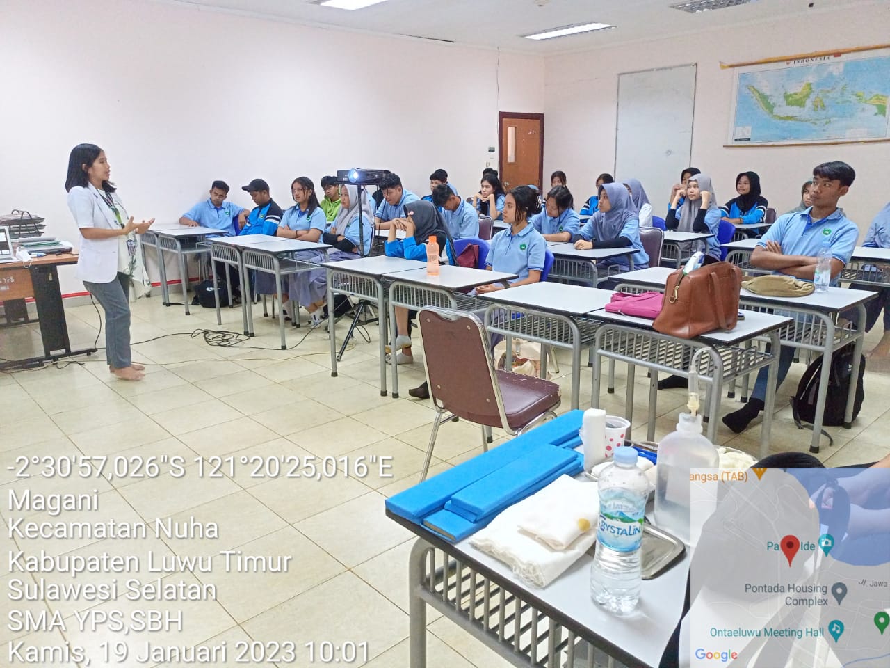 LUWU TIMUR – Guna memberikan pengetahuan dan keterampilan di bidang kesehatan khususnya anggota Pramuka, maka BLUD UPTD Puskesmas Nuha Kecamatan Nuha melakukan pembinaan Saka Bakti Husada (SBH) kepada siswa-siswi SMA YPS Sorowako, Kamis (19/01/2023), bertempat di SMA YPS Sorowako, Kecamatan Nuha.
