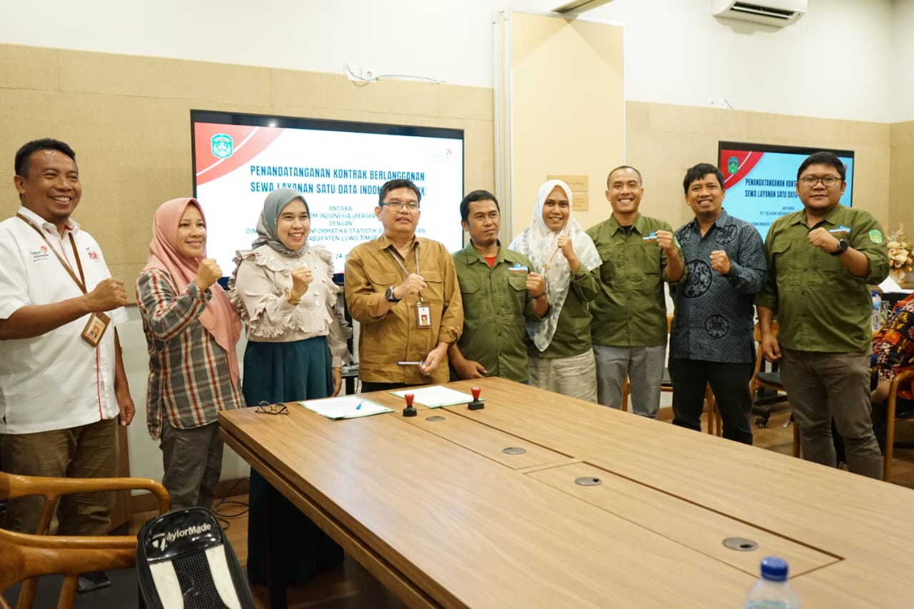 LUWU TIMUR – Dalam rangka mewujudkan platform satu data Indonesia di Kabupaten Luwu Timur, maka Dinas Komunikasi Informatika, Statistik dan Persandian (Diskominfo SP) Kabupaten Luwu Timur menandatangani kontrak kerja sama dengan PT. Telkom Indonesia (Persero) Tbk. untuk mendapatkan layanan BigBox, sebagai penyedia digital platform “Satu Data Indonesia”.