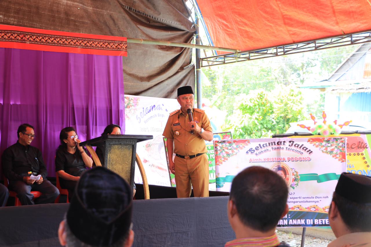 Di tengah duka yang mendalam, Bupati Budiman menyampaikan rasa terima kasih karena bisa hadir dalam rangka berbagi duka dengan Almh. Kristina Podong yang telah mendahului ke tempat peristirahatan terakhirnya.