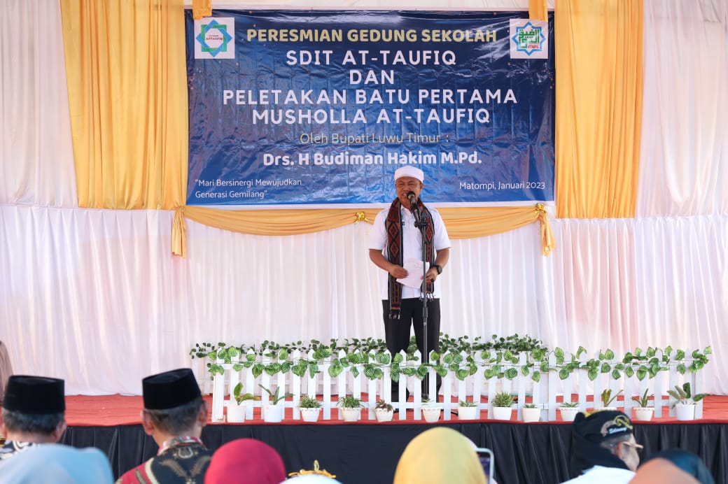 “Pada dasarnya, sekolah Islam Terpadu merupakan sekolah yang menerapkan kurikulum pendidikan umum dan pendidikan agama menjadi satu kesatuan,” kata Bupati saat meresmikan Gedung Sekolah Dasar Islam Terpadu (SDIT) At-Taufiq yang berlokasi di Desa Matompi, Kecamatan Towuti, yang ditandai dengan pengguntingan pita, Jum’at (10/02/2023).