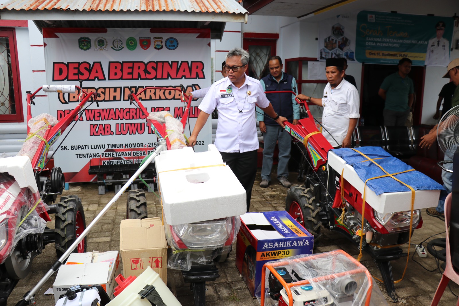 LUWU TIMUR – Bupati Luwu Timur, H. Budiman menyerahkan Sarana Pertanian dan Nelayan Desa Wewangriu yang merupakan Program Pengembangan Kawasan Perdesaan Mandiri (PKPM) PT. Vale Indonesia Tbk. Kawasan Pengembangan Pesisir dan Industri Olahan Hasil Laut, yang berlangsung di halaman Kantor Desa Wewangriu, Kecamatan Malili, Rabu (15/02/2023).
