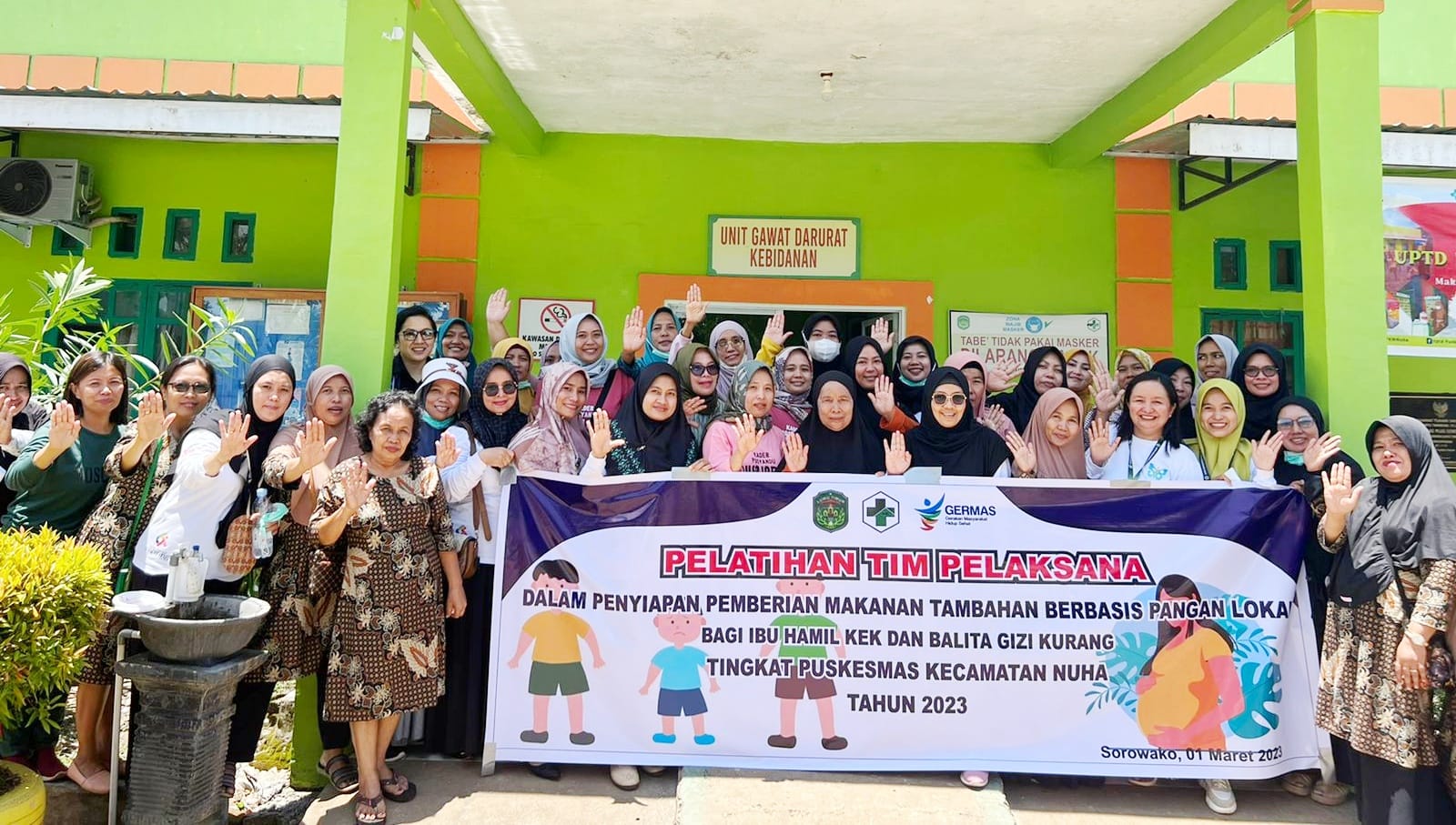 LUWU TIMUR – UPTD Puskesmas Nuha menggelar Pelatihan Pemberian Makanan Tambahan (PMT) berbasis pangan lokal yang diikuti perwakilan dari 4 desa dan 1 kelurahan dalam wilayah kerja UPTD PKM Nuha, yakni Ketua TP PKK Desa, kader Posyandu dengan didampingi bidan Desa masing-masing, di PKM Nuha Sorowako, Rabu (01/02/2023).
