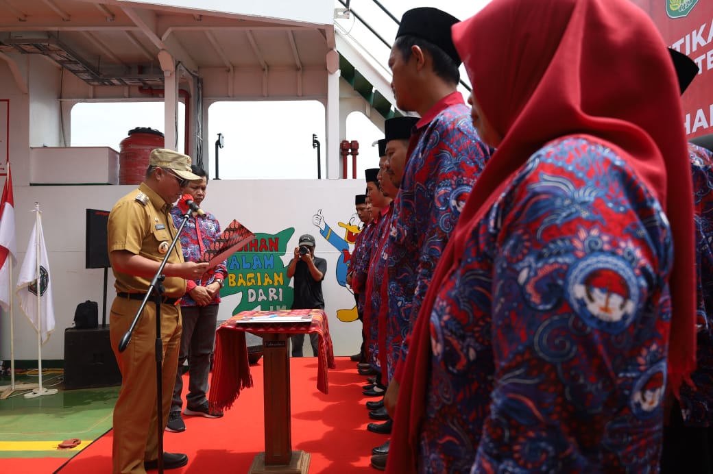 Pelantikan yang dilakukan oleh Ketua APDESI Sulsel, Sri Rahayu Usmi tersebut terbilang unik, karena diselenggarakan di atas Kapal KMP Opudi yang sedang berjalan disekitaran Danau Matano, Kecamatan Nuha.