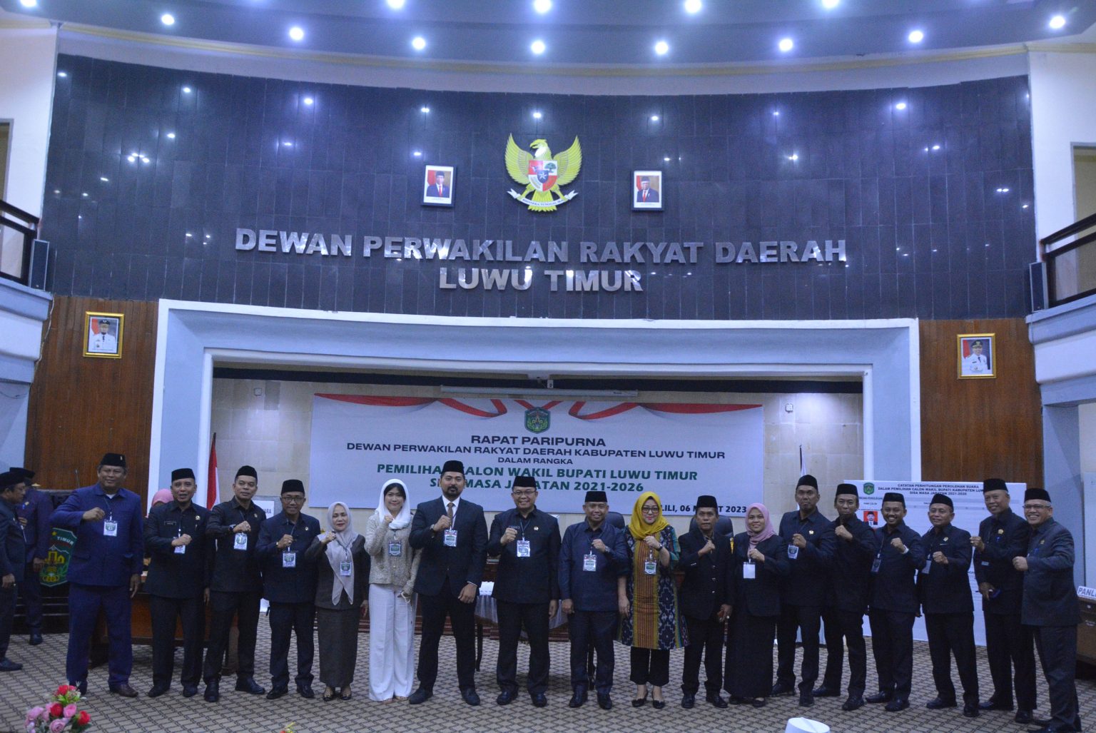 LUWU TIMUR – Dewan Perwakilan Rakyat Daerah (DPRD) Kabupaten Luwu Timur menggelar rapat paripurna dalam rangka Pemilihan Wakil Bupati sisa Masa Jabatan 2021 – 2026, yang dilaksanakan diruang paripurna DPRD Lutim, Senin (06/03/2023).