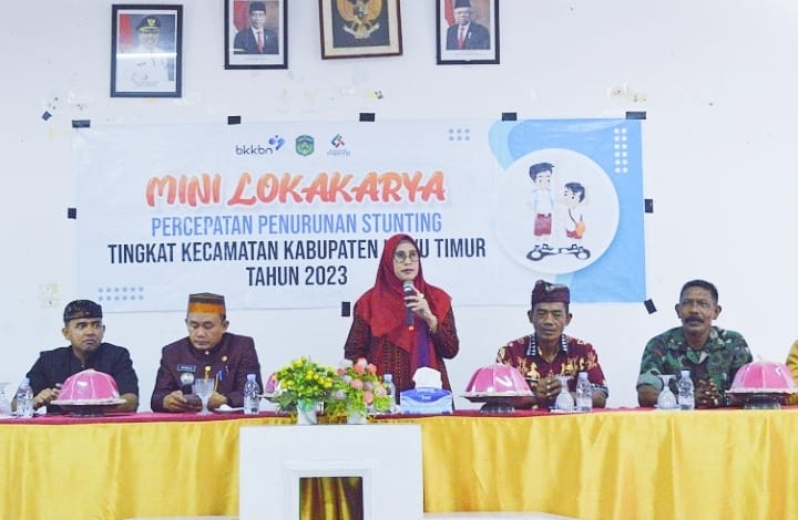 LUWU TIMUR – Wakil Ketua II Tim Percepatan Penurunan Stunting (TPPS) Tingkat Kabupaten Luwu Timur yang juga ketua TP-PKK Lutim, Hj. Sufriaty Budiman menghadiri kegiatan Mini Lokakarya di tiga kecamatan, yaitu ; Kecamatan Tomoni Timur, Angkona dan Malili, yang dipusatkan di Aula Kecamatan Malili, Jumat (10/03/2023).