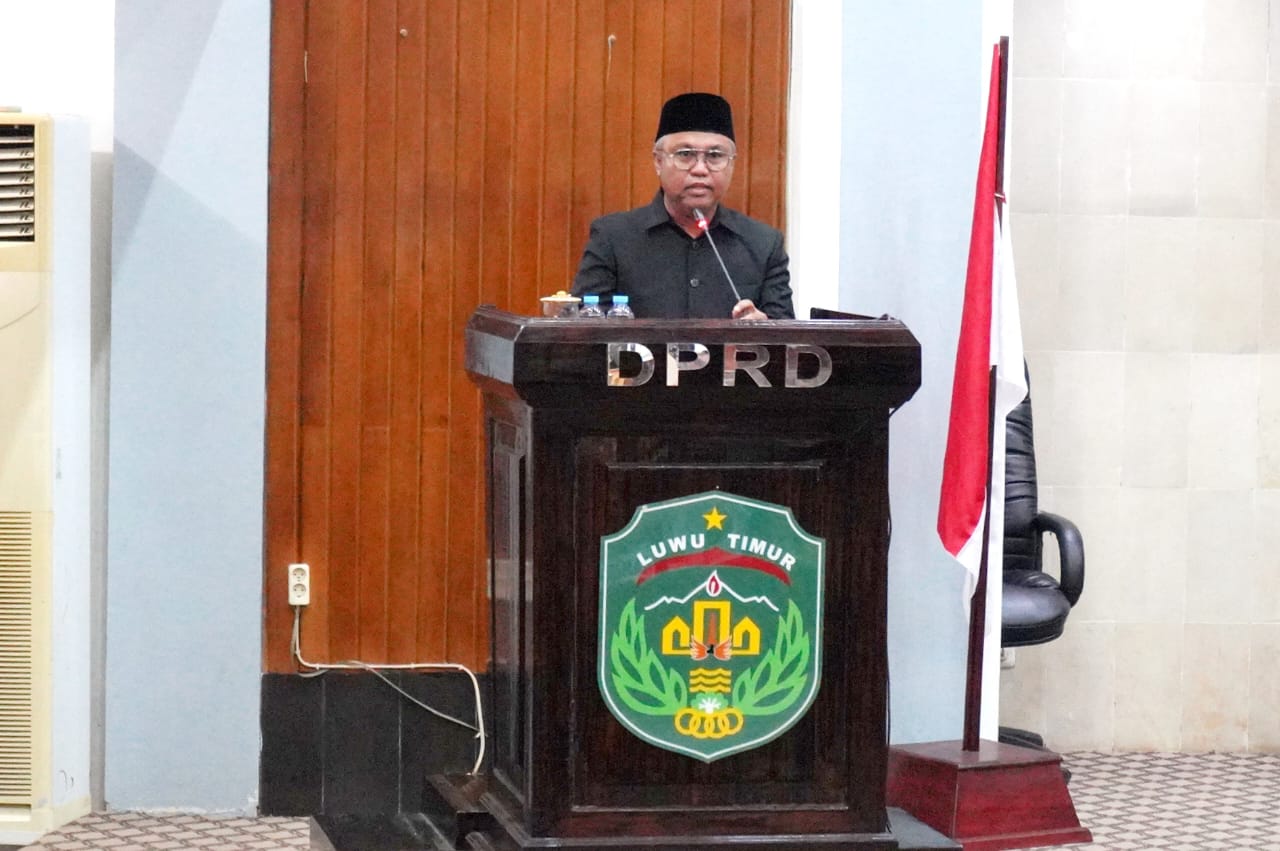 Sidang dipimpin Wakil Ketua I DPRD Luwu Timur, H. Muhammad Siddik BM. dan dihadiri anggota DPRD Luwu Timur, Pabung TNI, Mayor CBH Bachtiar, Sekretaris Daerah, H. Bahri Suli, perwakilan Kemenag Luwu Timur H.M Yusri dan Kepala OPD lingkup Pemkab Luwu Timur.