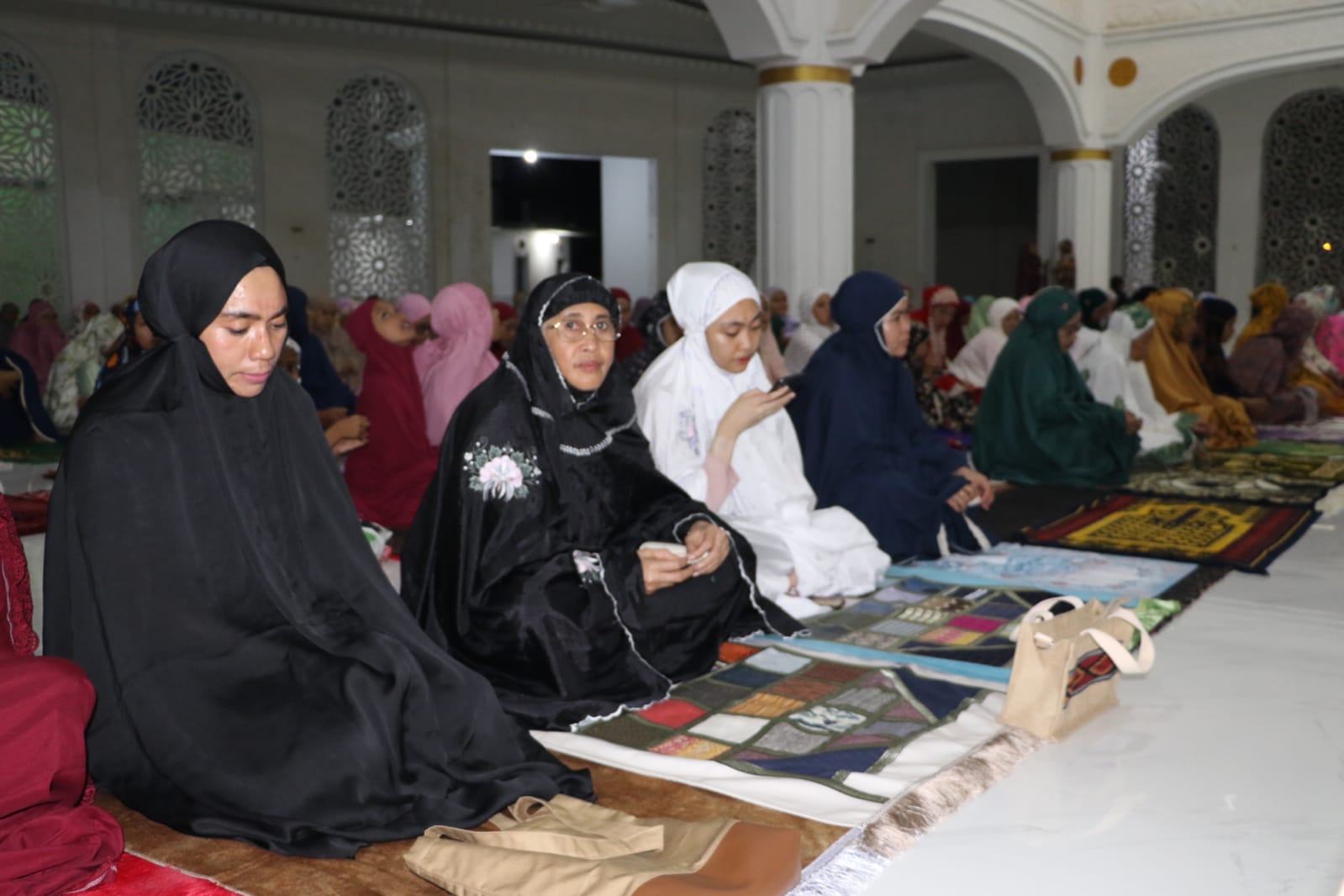 Bupati Luwu Timur, H. Budiman bersama Ketua TP PKK Lutim, Hj. Sufriaty Budiman beserta keluarga melaksanakan Shalat Isya dan Tarwih Perdana di Masjid Agung Malili, Kelurahan Malili, Kecamatan Malili.
