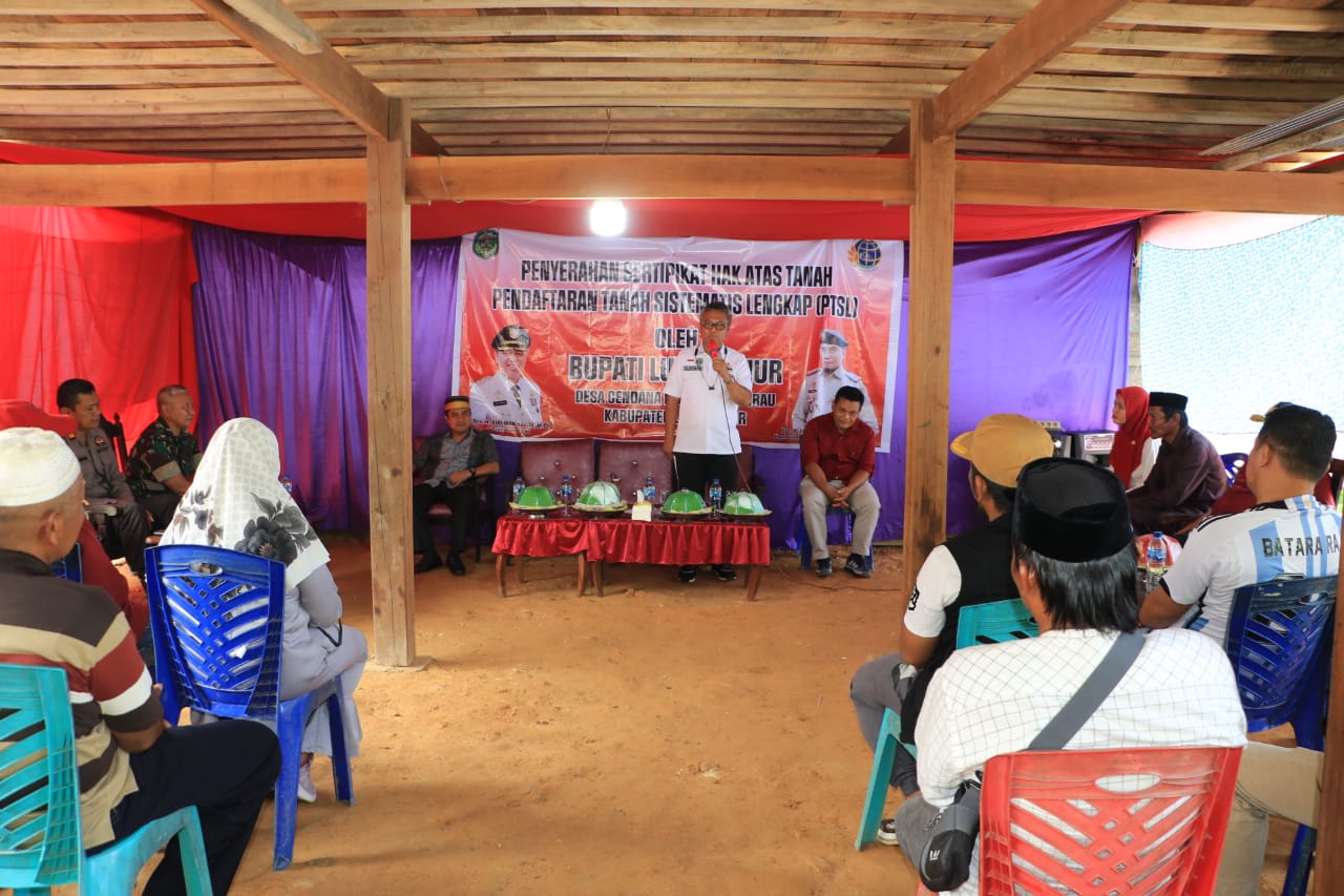 LUWU TIMUR – Bupati Luwu Timur, H. Budiman menyerahkan secara simbolis 430 Sertifikat tanah kepada masyarakat Desa Cendana, Kecamatan Burau, yang merupakan hasil dari sertifikasi massal melalui Program Pendaftaran Tanah Sistematis Lengkap (PTSL), bertempat di salah satu rumah warga di Desa Cendana, Rabu (22/03/2023).