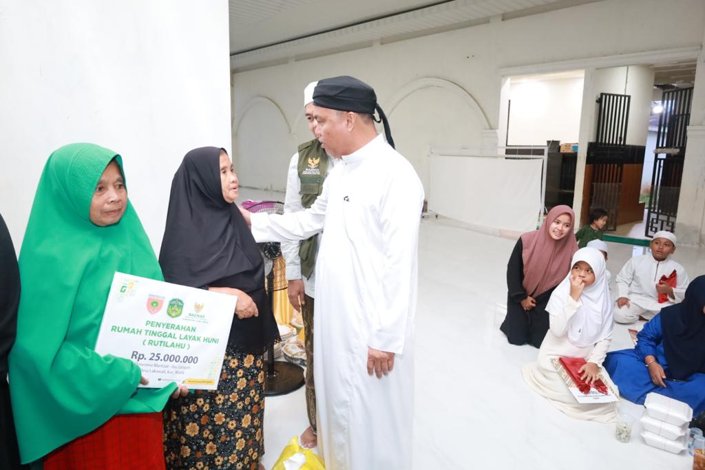 Selain bantuan bedah rumah, Bupati Budiman juga menyerahkan hadiah Amaliah Ramadhan tingkat SMP dan SD se-Kecamatan Malili dan dilanjutkan penyerahan 10 paket fakir miskin dan Dhuafa.