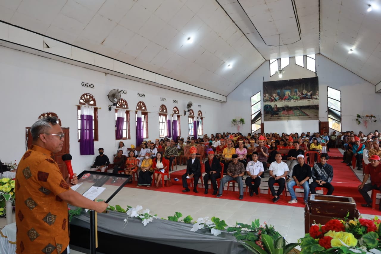 LUWU TIMUR – Bupati Luwu Timur, H. Budiman menghadiri Perayaan Paskah yang dirangkai HUT Ke-100 GKST Jemaat Maranatha Desa Lumbewe, Kecamatan Burau, Minggu (09/04/2023).