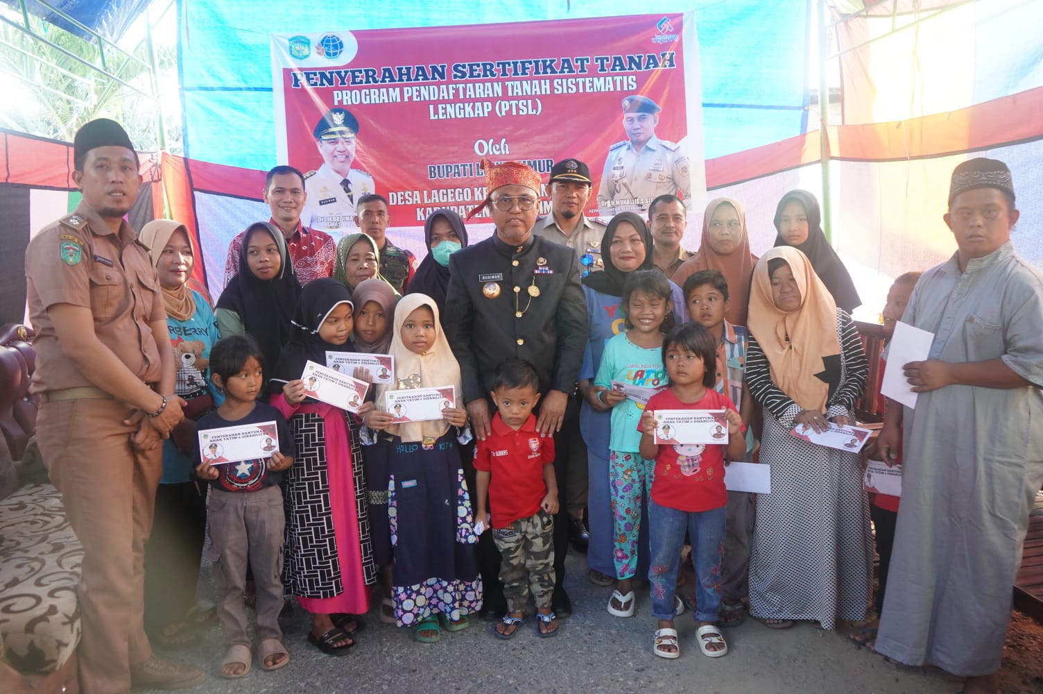 Selain penyerahan Sertifikat PTSL bersama kepala BPN Luwu Timur, Bupati juga menyerahkan Bantuan Dana Infrastruktur Desa, Bantuan Kendaraan Operasional, Bantuan Sosial serta Bantuan Alat Kesehatan di Desa Jalajja, kemudian Bantuan Keuangan Khusus Rumah Ibadah dan Santunan Anak Yatim dan Warga Disabilitas di Desa Lagego, Kecamatan Burau.