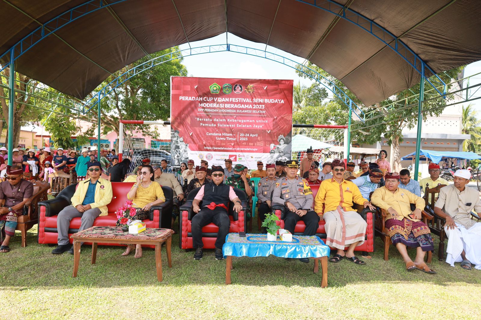 LUWU TIMUR – Bupati Luwu Timur, H. Budiman membuka Peradah Cup V dan Festival Seni Budaya Moderasi Beragama 2023 yang di ikuti seluruh DPP Peradah Indonesia Sulawesi Selatan, yang dipusatkan di Desa Cendana Hitam, Kecamatan Tomoni Timur, Kamis (20/04/2032).