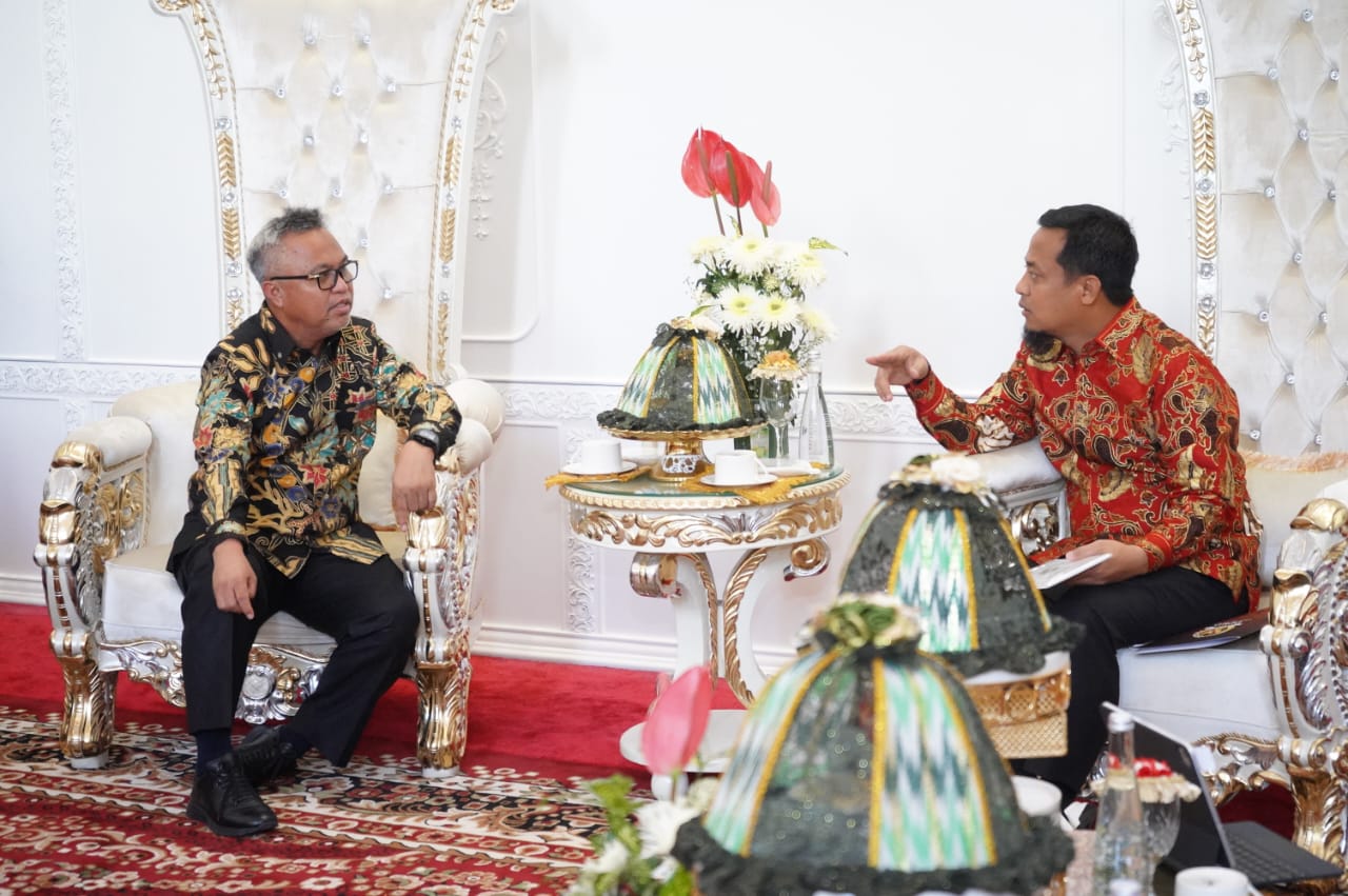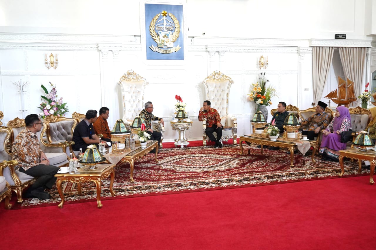 Gubernur Sulawesi Selatan, Andi Sudirman Sulaiman menyambut baik kedatangan Bupati Luwu Timur, H. Budiman dan rombongan dalam rangka undangan HUT Kabupaten Luwu Timur ke-20.