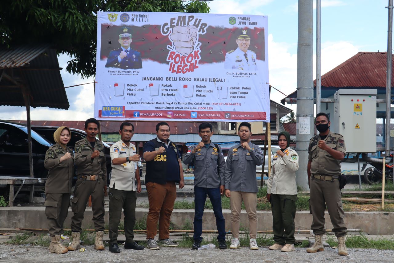 LUWU TIMUR – Bea Cukai Malili kembali bersinergi dengan Pemerintah Kabupaten Luwu Timur menggelar operasi pasar gabungan pengawasan rokok ilegal yang bertajuk “Gempur Rokok Ilegal”.