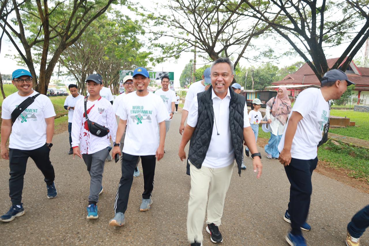 LUWU TIMUR – Bupati Luwu Timur, H. Budiman melepas Peserta Jalan Santai dalam rangka memperingati Hari Lingkungan Hidup Sedunia (World Environment Day) Tahun 2023 di Taman Iniaku Sorowako, Kecamatan Nuha, Sabtu (10/06/2023).