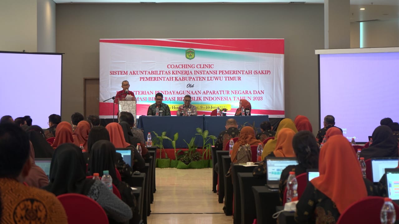 LUWU TIMUR – Sekretaris Daerah (Sekda) Kabupaten Luwu Timur, H. Bahri Suli membuka secara resmi Coaching Clinic Sistem Akuntabilitas Kinerja Instansi Pemerintah (SAKIP) bagi Perangkat Daerah di Lingkup Pemkab. Lutim Tahun 2023, bertempat di Hotel Gammara Makassar, Jum’at (09/06/2023).