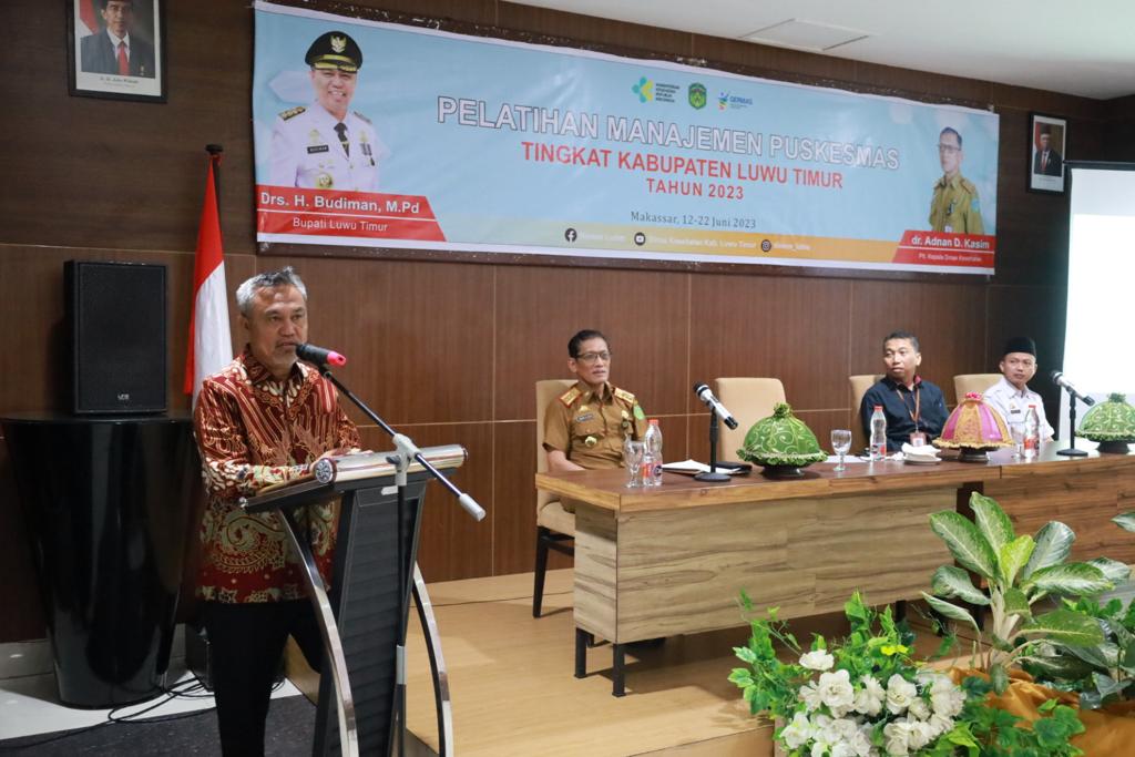 LUWU TIMUR – Bupati Luwu Timur, H. Budiman membuka kegiatan Pelatihan Manajemen Puskesmas tingkat Kabupaten Luwu Timur, di dampingi Kadis Kesehatan, dr. Adnan D. Kasim, yang dilaksanakan di Hotel D’Maleo Makassar, Senin (12/06/2023).