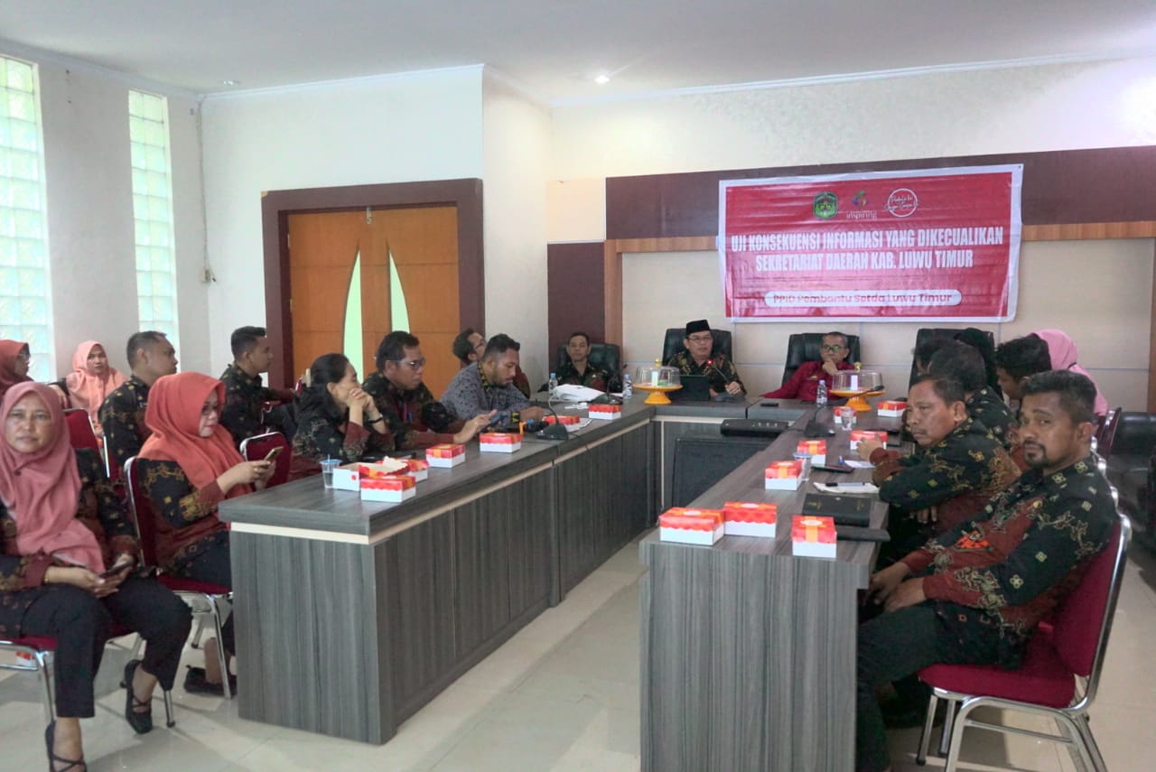 LUWU TIMUR – Sekretaris Daerah kabupaten Luwu Timur, H. Bahri Suli sekaligus atasan PPID utama Pemerintah Kabupaten Luwu Timur memimpin langsung kegiatan Uji Konsekuensi Terhadap Informasi Publik Yang Dikecualikan di lingkungan Sekretariat Daerah Kabupaten Lutim, bertempat di Ruang rapat Sekda, Rabu (22/06/2023).