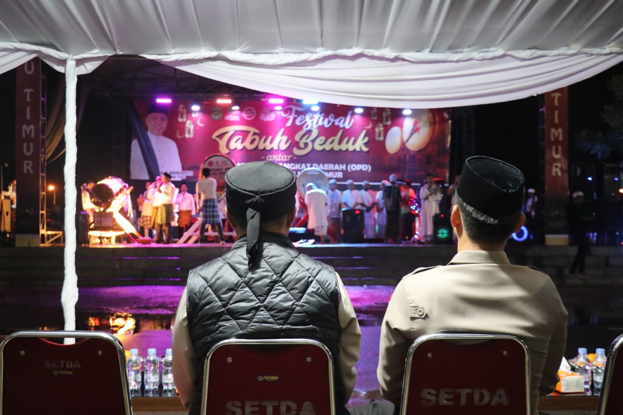 “Tentu kita patut bersyukur, karena malam takbiran ini kita masih diberikan kesempatan oleh Allah SWT untuk hadir di tempat ini dalam rangka menyaksikan penampilan seluruh peserta fasrtival tabuh bedug, kegiatan ini merupakan hal yang positif untuk terus dipertahankan kedepan,” kata Budiman.
