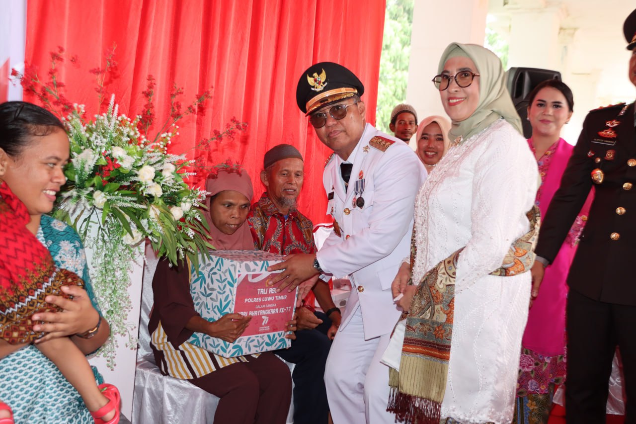 LUWU TIMUR – Bupati Luwu Timur (Lutim), H. Budiman, didampingi Ketua Tim Penggerak (TP) PKK Lutim, Hj. Sufriaty menghadiri upacara peringatan Hari Ulang Tahun (HUT) Bhayangkara ke-77, dengan tema “Polri Presisi untuk Negeri, Pemilu Damai Indonesia Maju”, di Lapangan Merdeka Malili, Sabtu (1/7/2023).