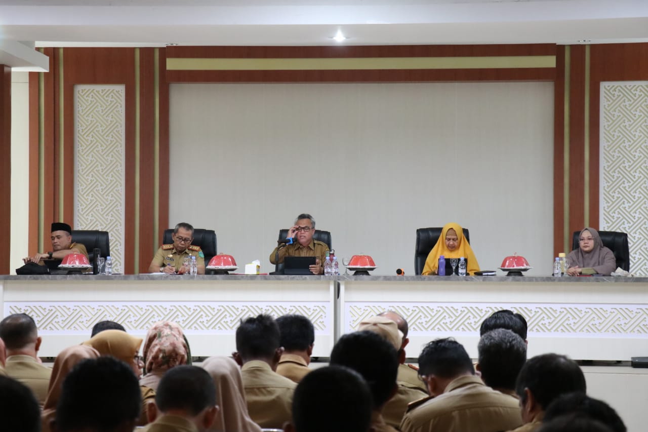 Selanjutnya yang kedua ialah persiapan pembahasan APBD 2024, APBD perubahan. Ketiga terkait kedisiplinan, kekompakan, pengendalian kepala OPD masing-masing. Keempat terkait kebersihan kota, kecamatan dan desa, penerangan jalan, taman, marka dan rambu jalan, serta terminal.