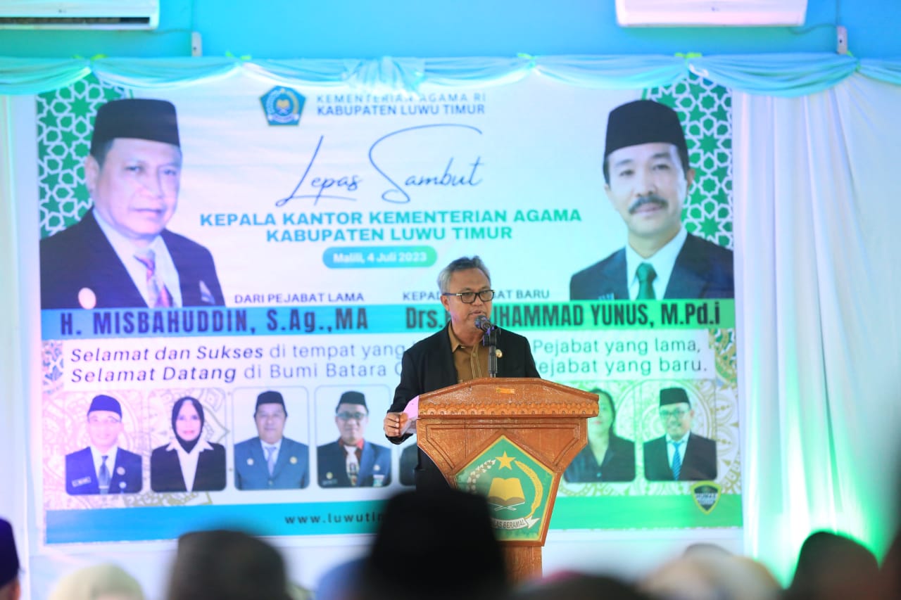 “Saya, atas nama Pimpinan Daerah Kabupaten Luwu Timur, sekaligus atas nama masyarakat Luwu Timur, menyampaikan ucapan terimakasih yang sebesar-besarnya, disertai dengan penghargaan yang setinggi-tingginya kepada Bapak H. Misbah yang selama melaksanakan tugasnya sebagai Kakan Kemenag Lutim, telah menunjukkan kerjasama yang baik di jajaran Pemerintah Kabupaten Luwu Timur,” ucapnya.