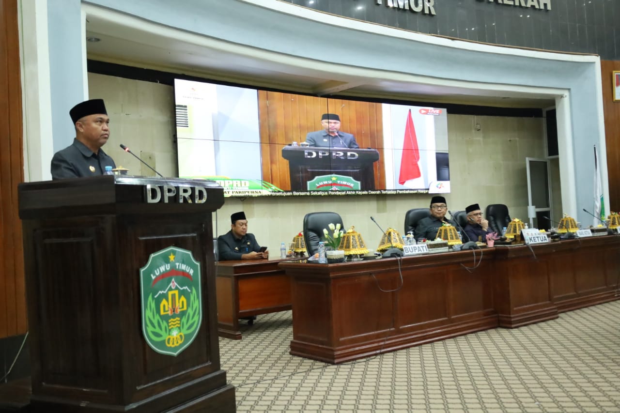Paripurna tersebut dipimpin langsung oleh Ketua DPRD Lutim, Aripin, didampingi Wakil Ketua II, H. Usman Sadik, serta dihadiri segenap Anggota DPRD, para Asisten dan Staf Ahli, para Kepala OPD, para Kabag, dan Camat se-Kabupaten Luwu Timur.