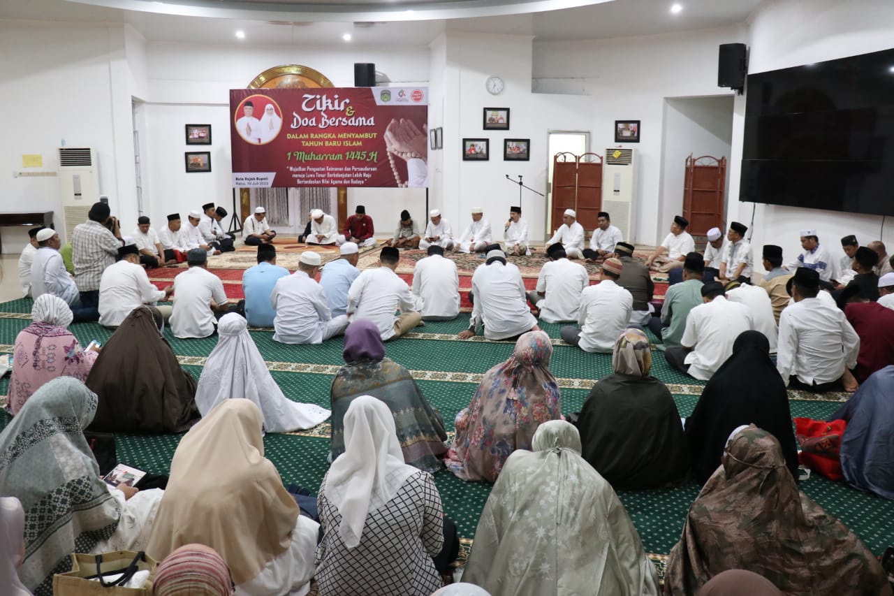 LUWU TIMUR – Dalam rangka menyambut datangnya Tahun Baru Islam 1 Muharram 1445 Hijriah, Pemerintah Kabupaten Luwu Timur dan Kementerian Agama Lutim menggelar Dzikir dan Do’a bersama, di Aula Rumah Jabatan Bupati Luwu Timur, Selasa (18/07/2023) malam.