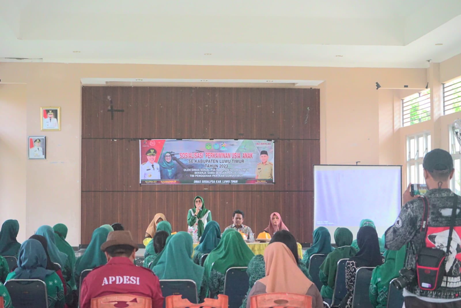 LUWU TIMUR – Tim Penggerak PKK Kabupaten Luwu Timur bekerja sama dengan Dinas Sosial, Pemberdayaan Perempuan dan Perlindungan Anak (P3A) kabupaten Luwu Timur gencar menggelar sosialisasi perkawinan usia anak.