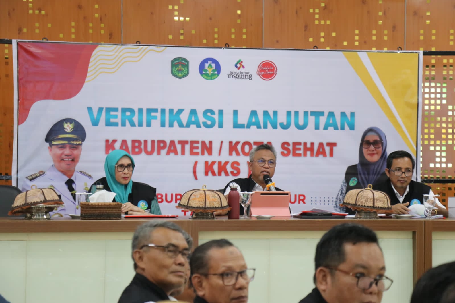 LUWU TIMUR – Pemerintah Kabupaten Luwu Timur mengikuti Verifikasi Lanjutan Penghargaan Kabupaten/Kota Sehat (KKS) Tingkat Nasional Tahun 2023 secara daring di Aula Rujab Bupati, Rabu (09/08/2023).