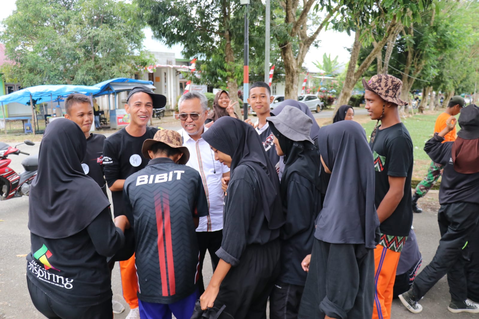Bupati kemudian turun dan menyapa serta memberi semangat kepada para Siswa-Siswi yang akan mengibarkan Sang Saka Merah Putih pada HUT Republik Indonesia ke-78 tingkat Kecamatan Burau pada 17 Agustus 2023 mendatang.