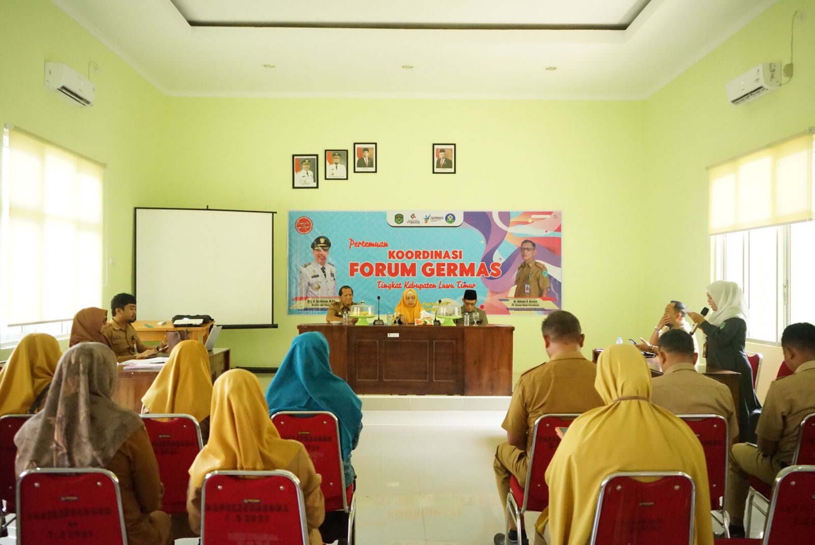LUWU TIMUR – Asisten Administrasi Umum, Nursih Hariani, mewakili Bupati Lutim, didampingi Kepala Dinas Kesehatan, dr. Adnan D. Kasim, dan Narasumber dari Dinkes Provinsi Sulsel, Wahidin Rahima, membuka rapat Koordinasi Forum Generasi Masyarakat Hidup Sehat (Germas) Tingkat Kabupaten Lutim di Aula Pertemuan Bapelitbangda, Senin (14/8/2023).